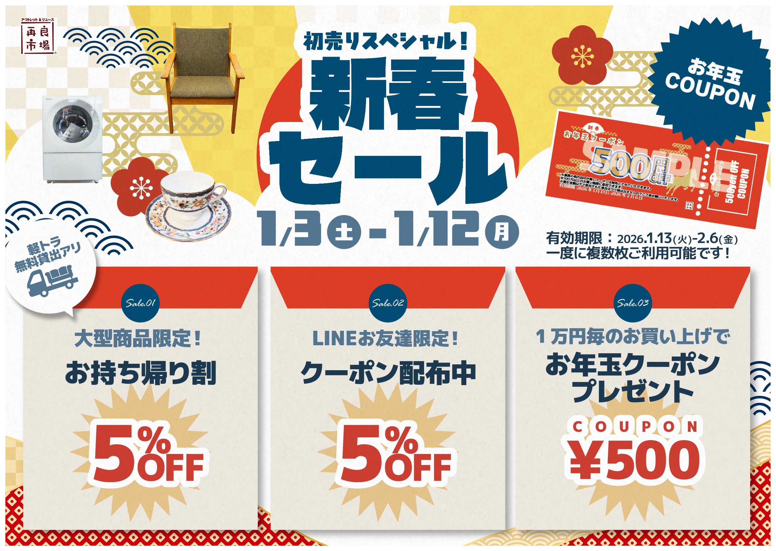 ★ 1万円毎お買い上げでプレゼント!お年玉クーポン ≪ 500円クーポン≫