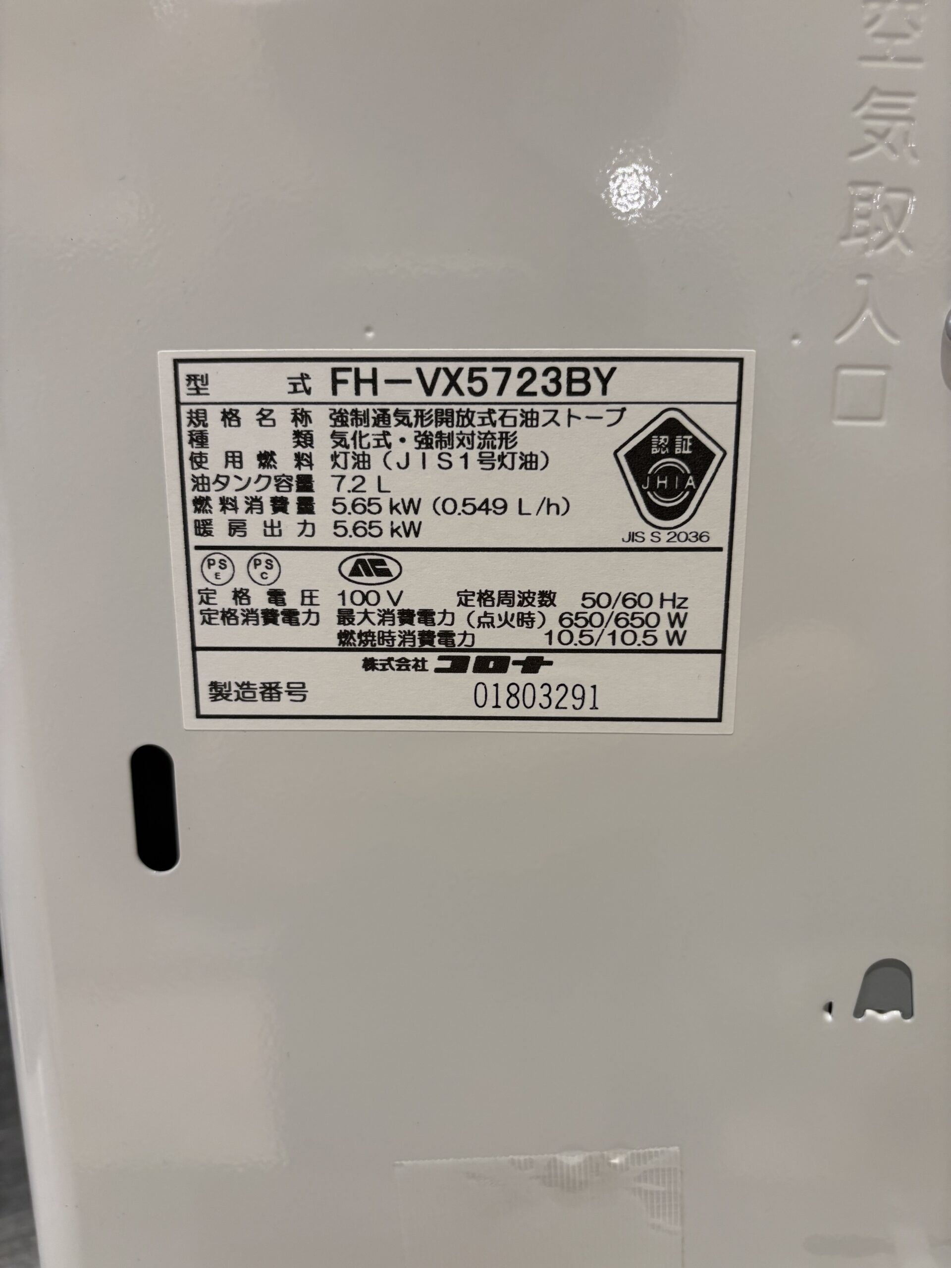 【中古品】 コロナ 石油ファンヒーター 5.6kw FH-VX5723BY 2023年製 木造15畳 コンクリート20畳 買取しました! 2025年10月23日