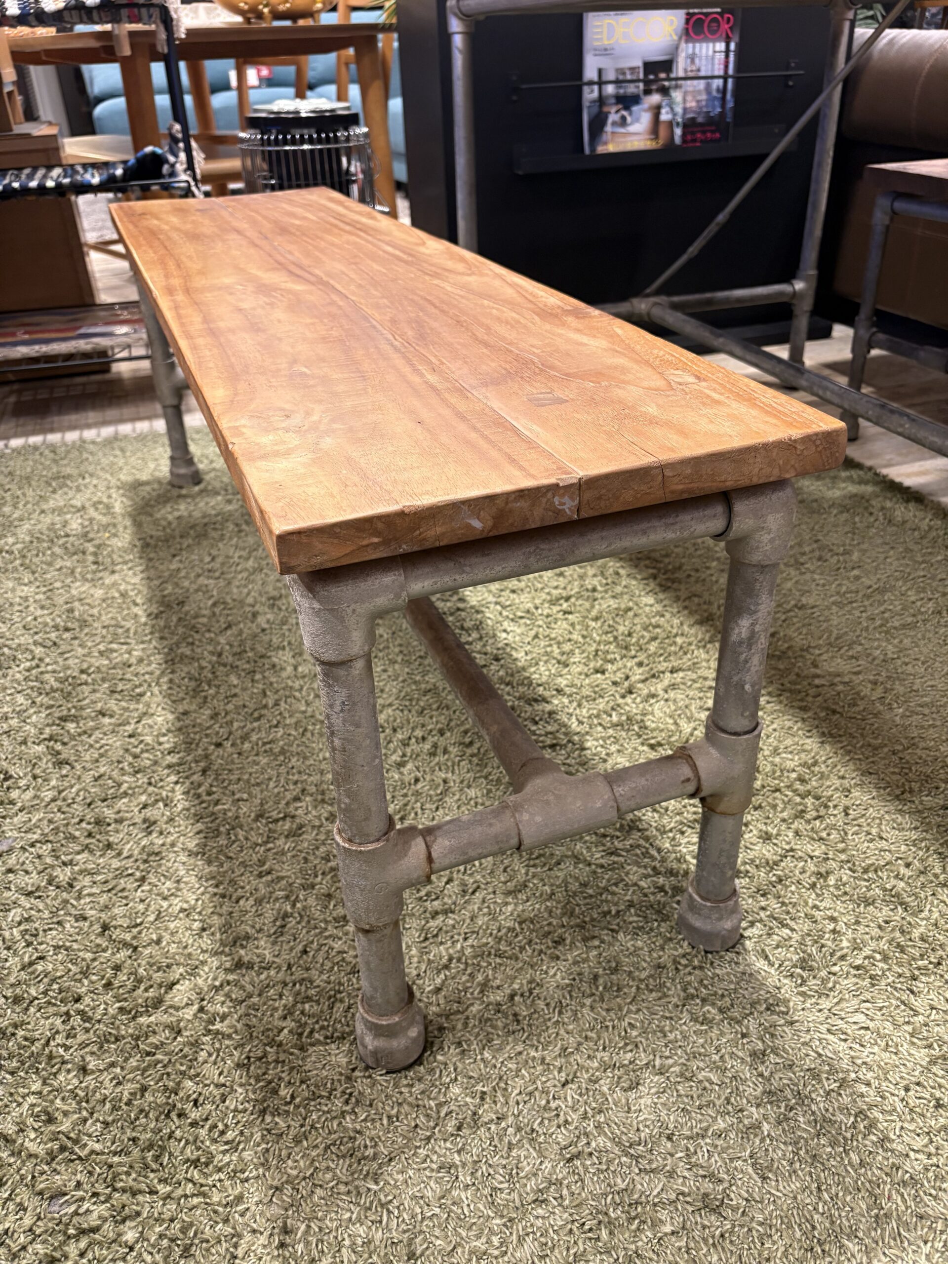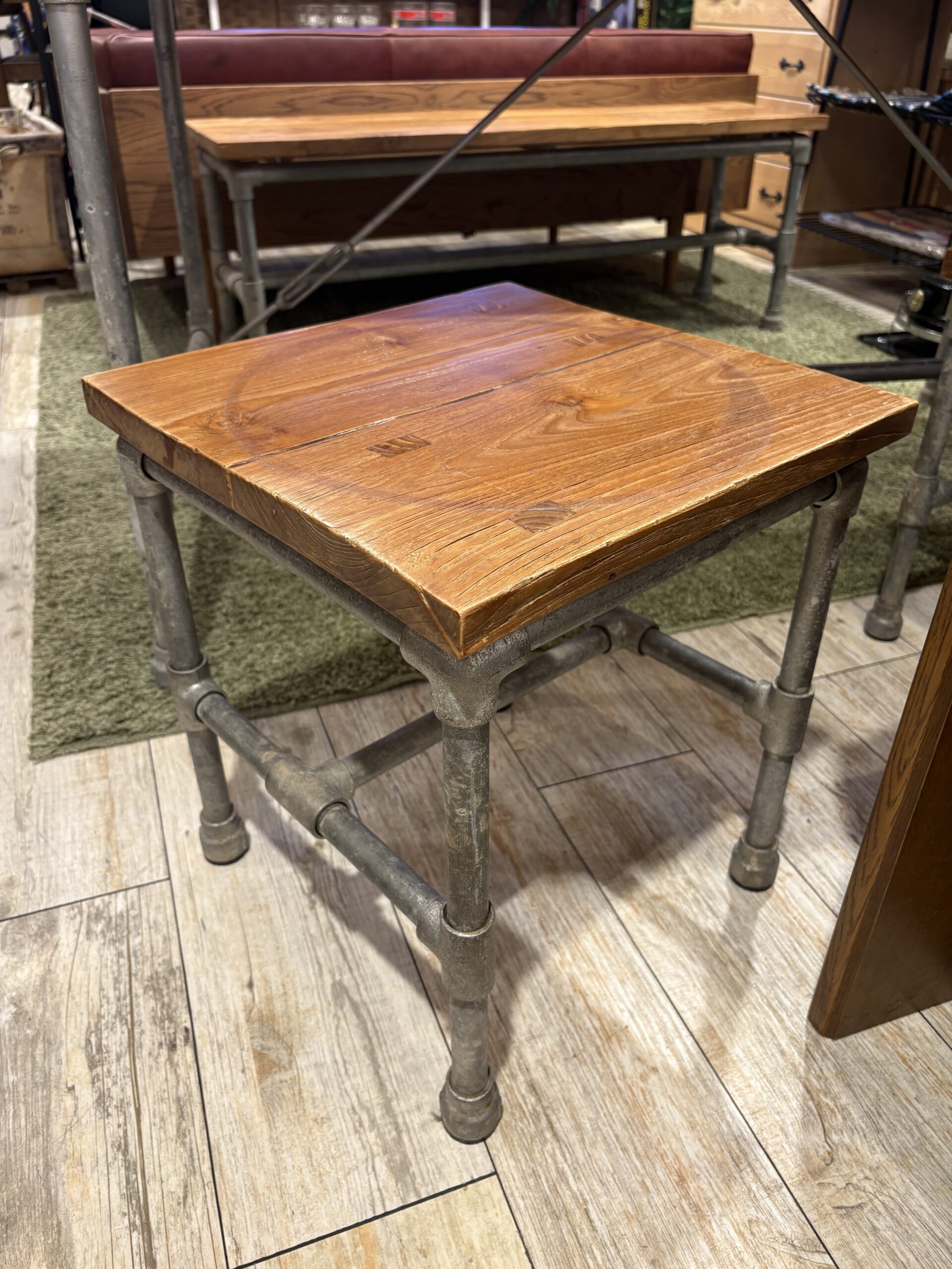 チーク古材を使用した天板と、クールなスチールフレームのコンビネーションは特別な存在感を放つこと間違いなしです。