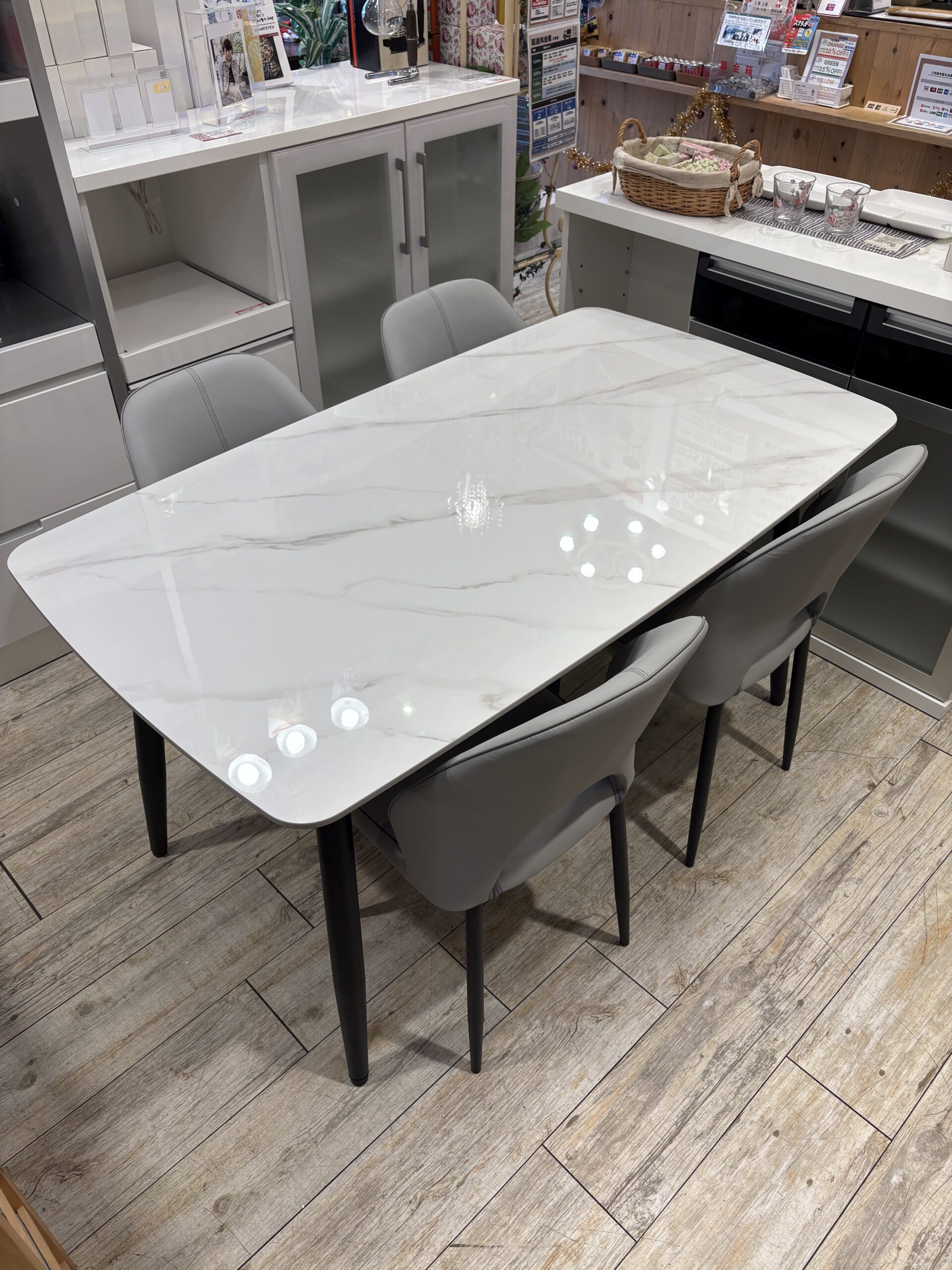 【アウトレット品】 ダイニング5点セット セラミック天板 大理石調 モダン 入荷しました! 2025年12月14日