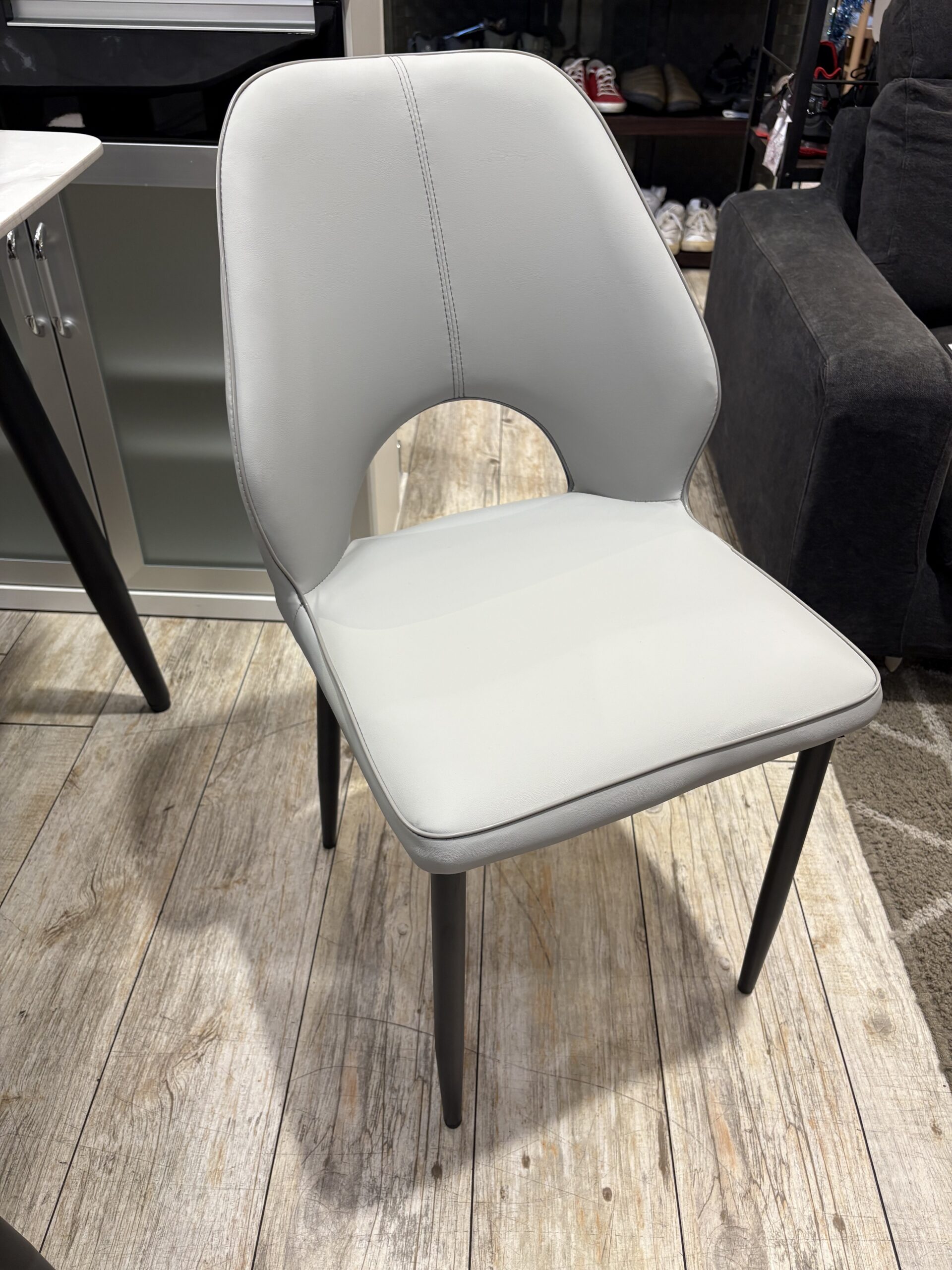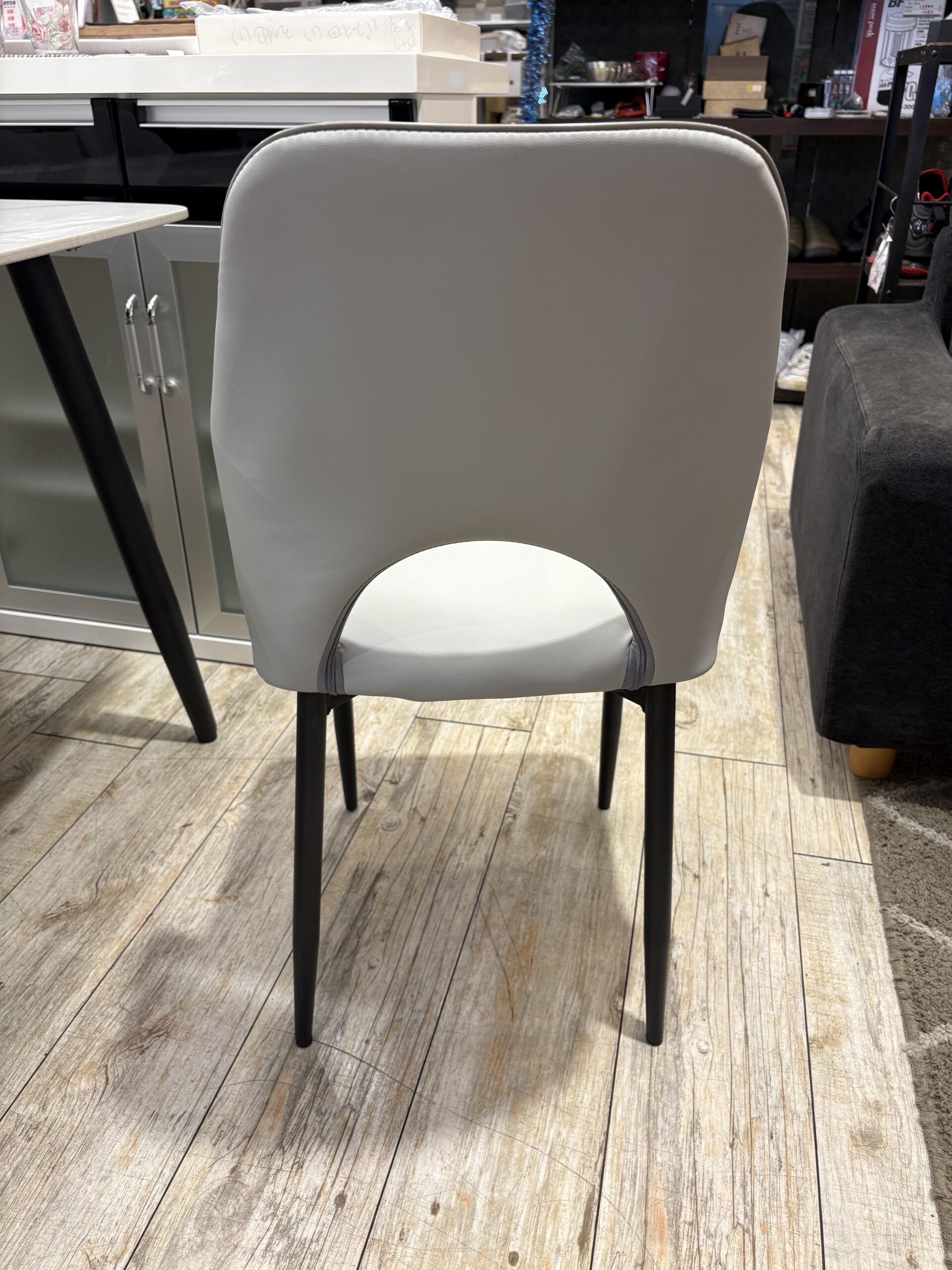 清潔感のあるホワイトカラーとシャープなブラック脚の組み合わせが、都会的で洗練された印象を与えます。