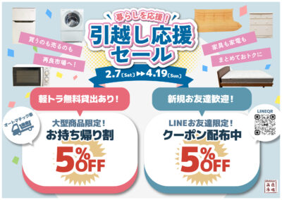 2月7日(土)~4月19日(金)まで引っ越し応援セール開催中!