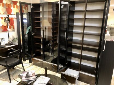 松田家具 ガーネット フリーボードになるブラックガラス本棚 2サイズ 買取しました。