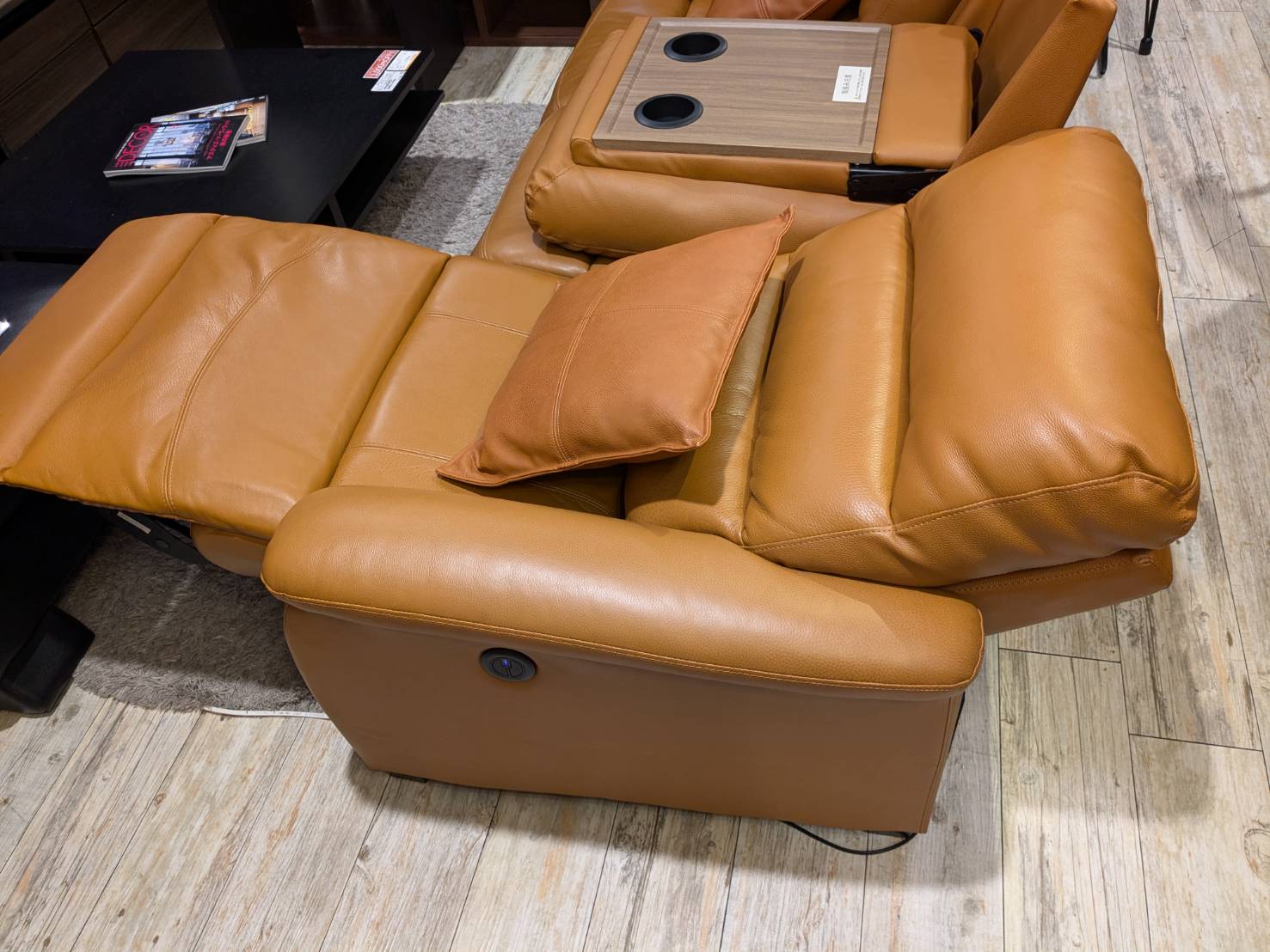 電動リクライニング 3シーターソファ 本革張り USBポート ドリンクホルダー ブラウン 買取しました!