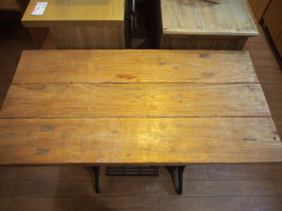 古いチーク材を天板に使用し、アンティークのミシン台をイメージした脚部が特徴のソーイングテーブルです。デスクや飾り棚としてご使用いただけます。