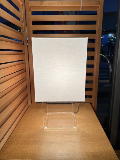 まるで空中に浮かんでいるようなテーブルスタンドライト。