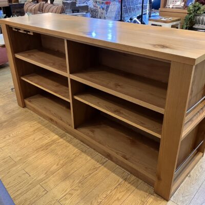 木目の自然な表情が美しい天然木を使用したバーカウンターです
