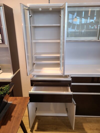 古賀家具 Excellent / エクセレント レンジボード キッチン収納 ハイカウンター ブラウン木目 食器棚 ワイドサイズ 買取しました!