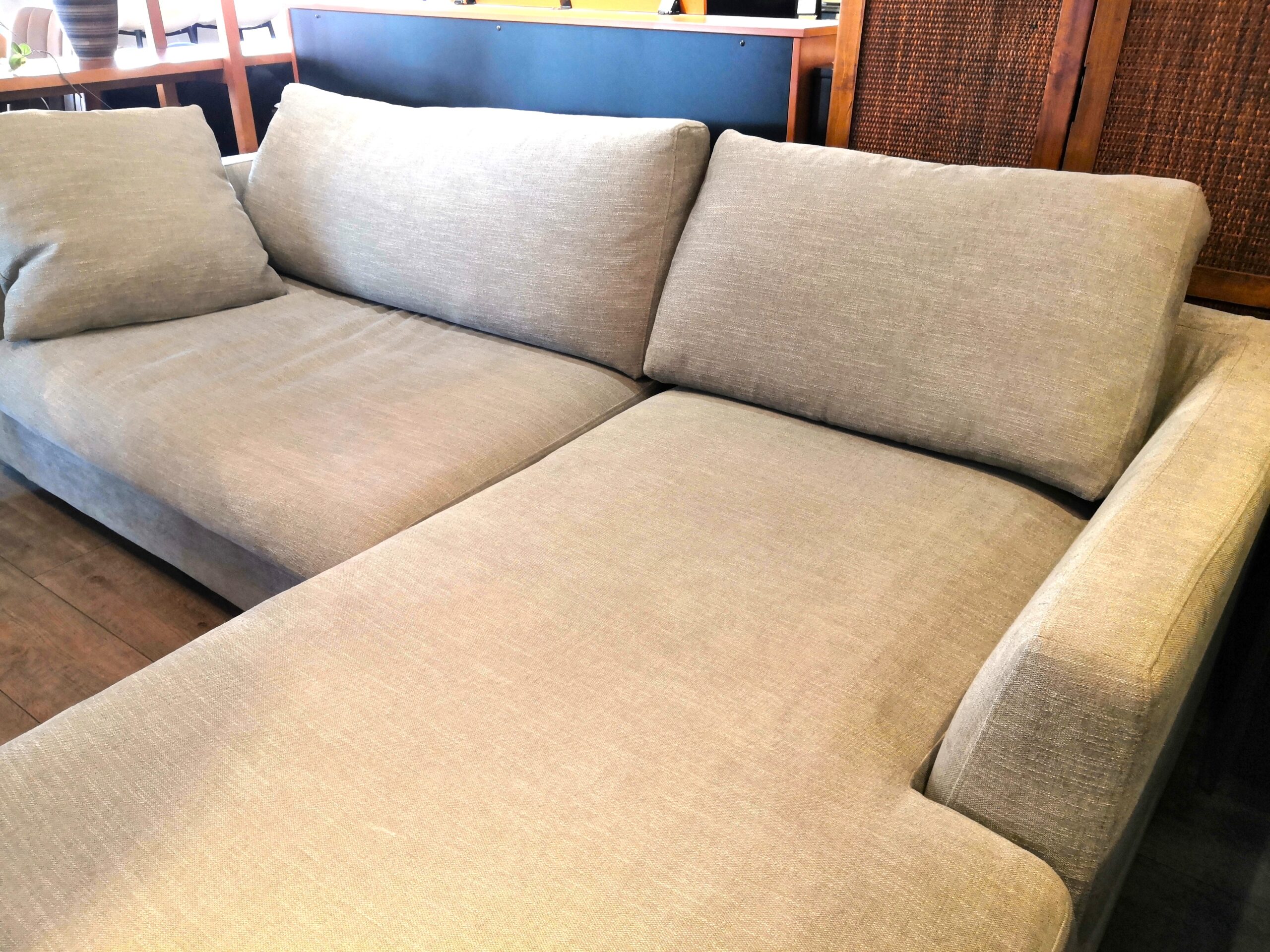 正面向かって右側が長い、左カウチタイプのソファになります。