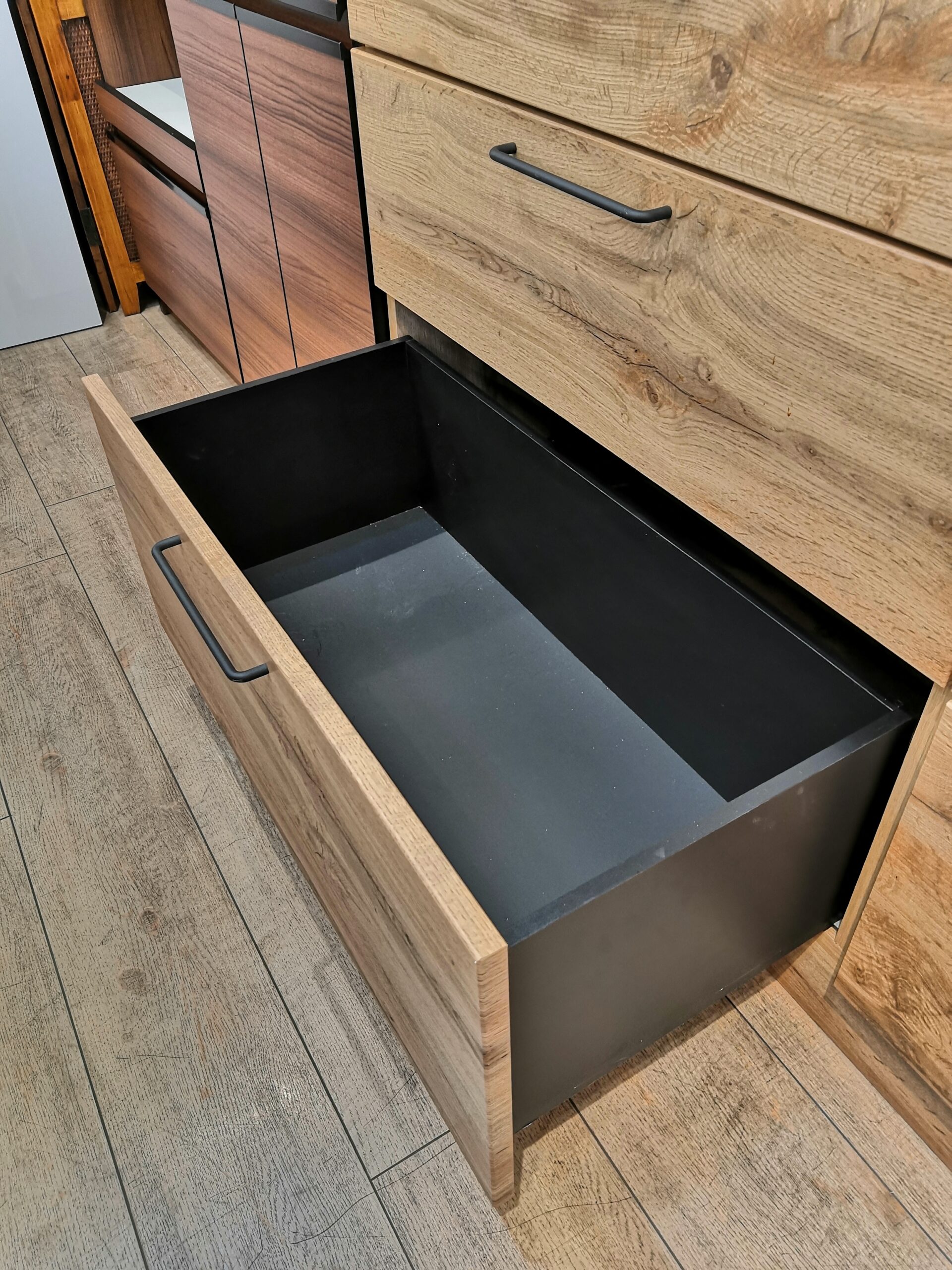 引き出しのレールは本体の下に隠れているので、埃が溜まって開きが悪くなることがありません。