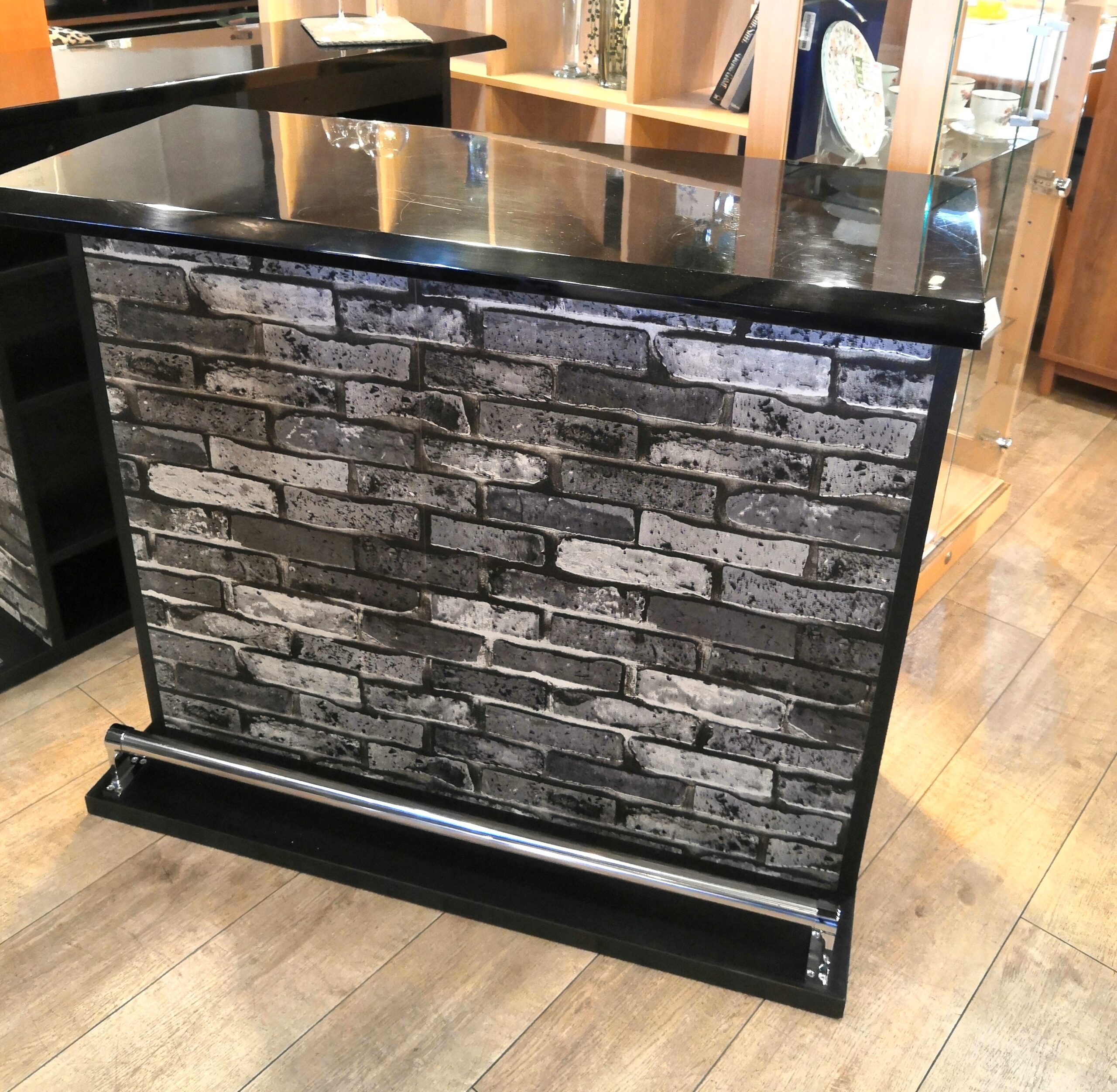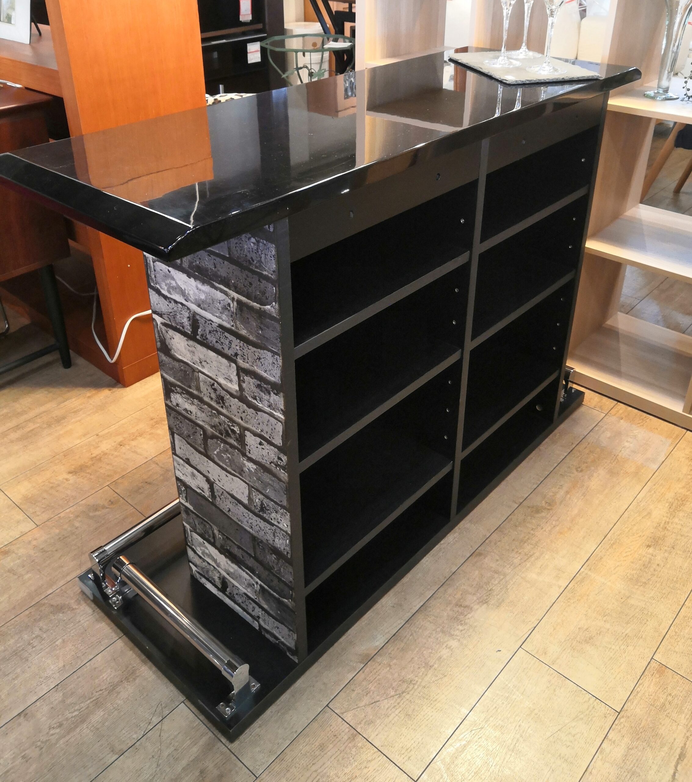 幅100㎝ 幅120㎝ ブラック レンガ調プリント オシャレ L字型 サイドカウンター ホームバー バーカウンター