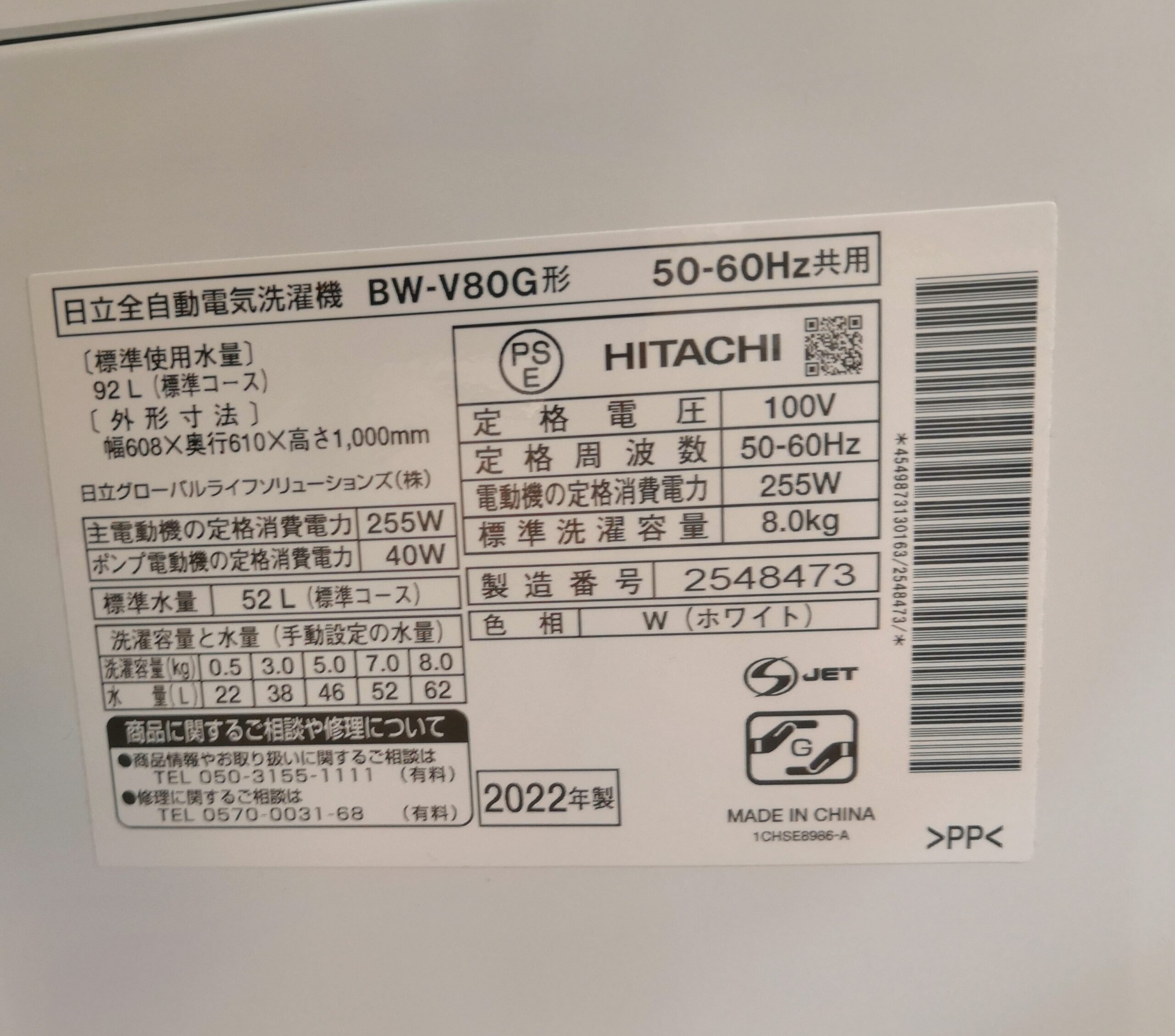 大森店より本日は、HITACHI ビートウォッシュ 2022年製 ホワイトシャンパン 8㎏洗い 全自動洗濯機をご紹介です★