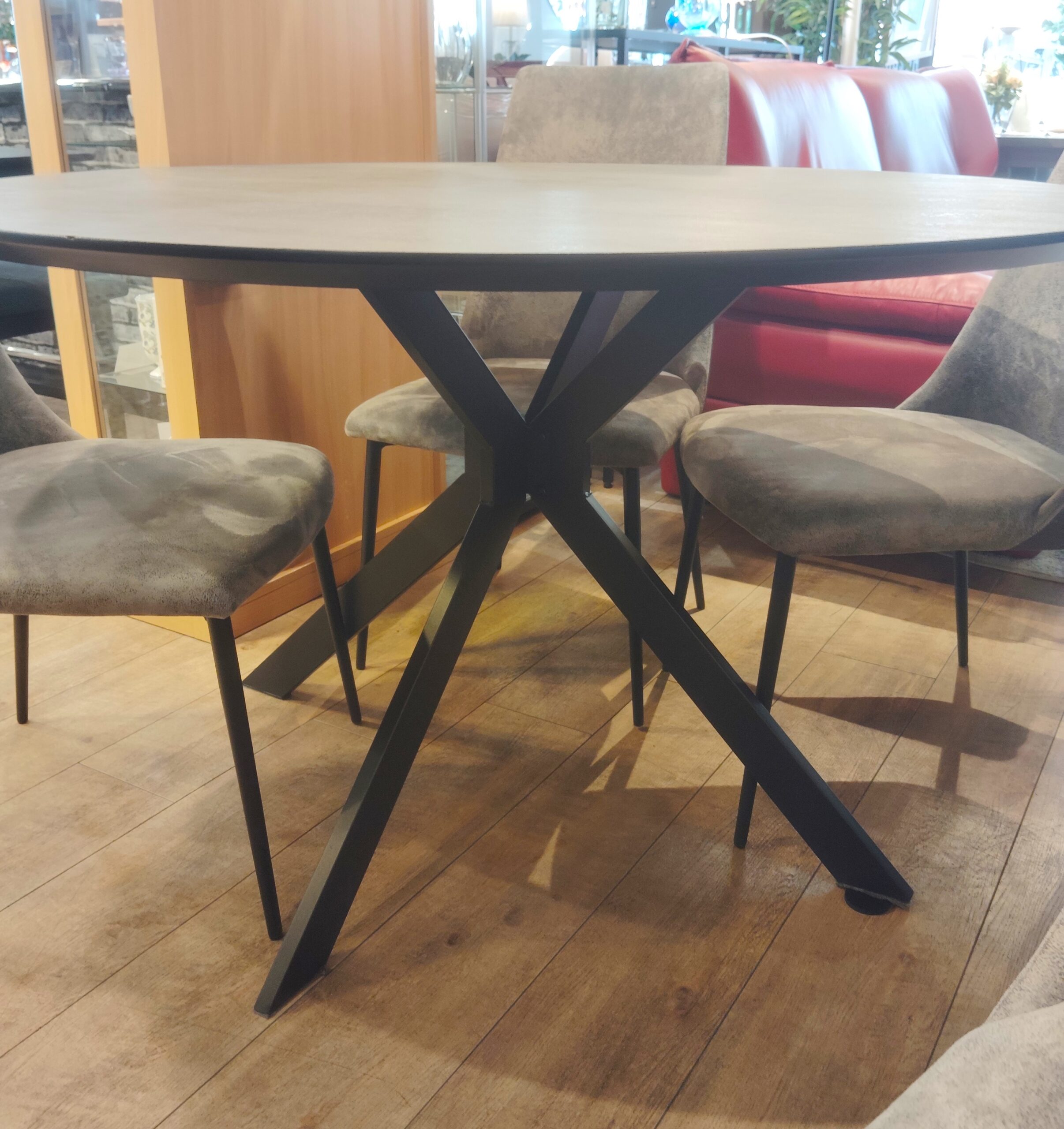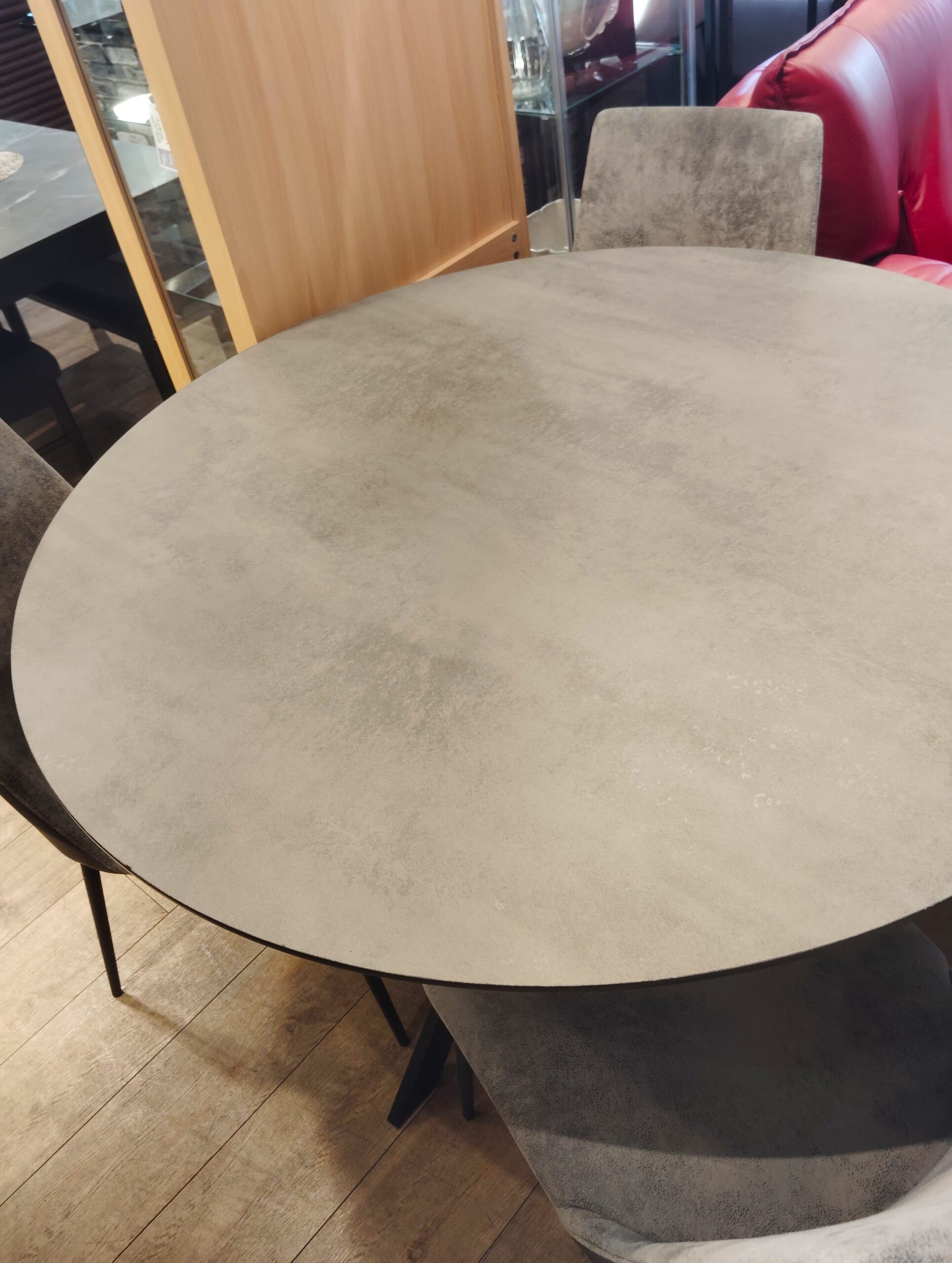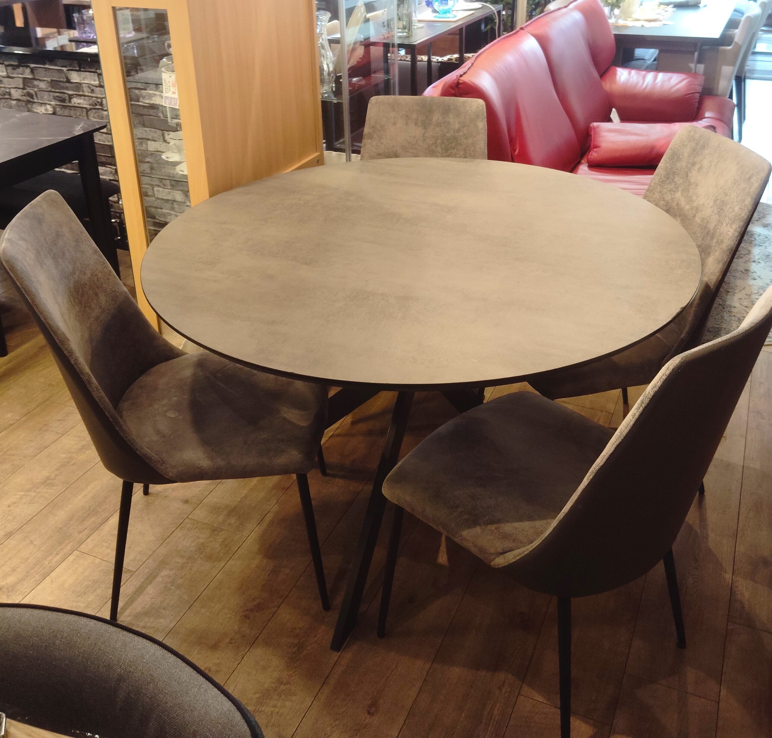 大森店より本日は、グレー系のラウンド型、直径120㎝ ダイニング5点セットをご紹介です★