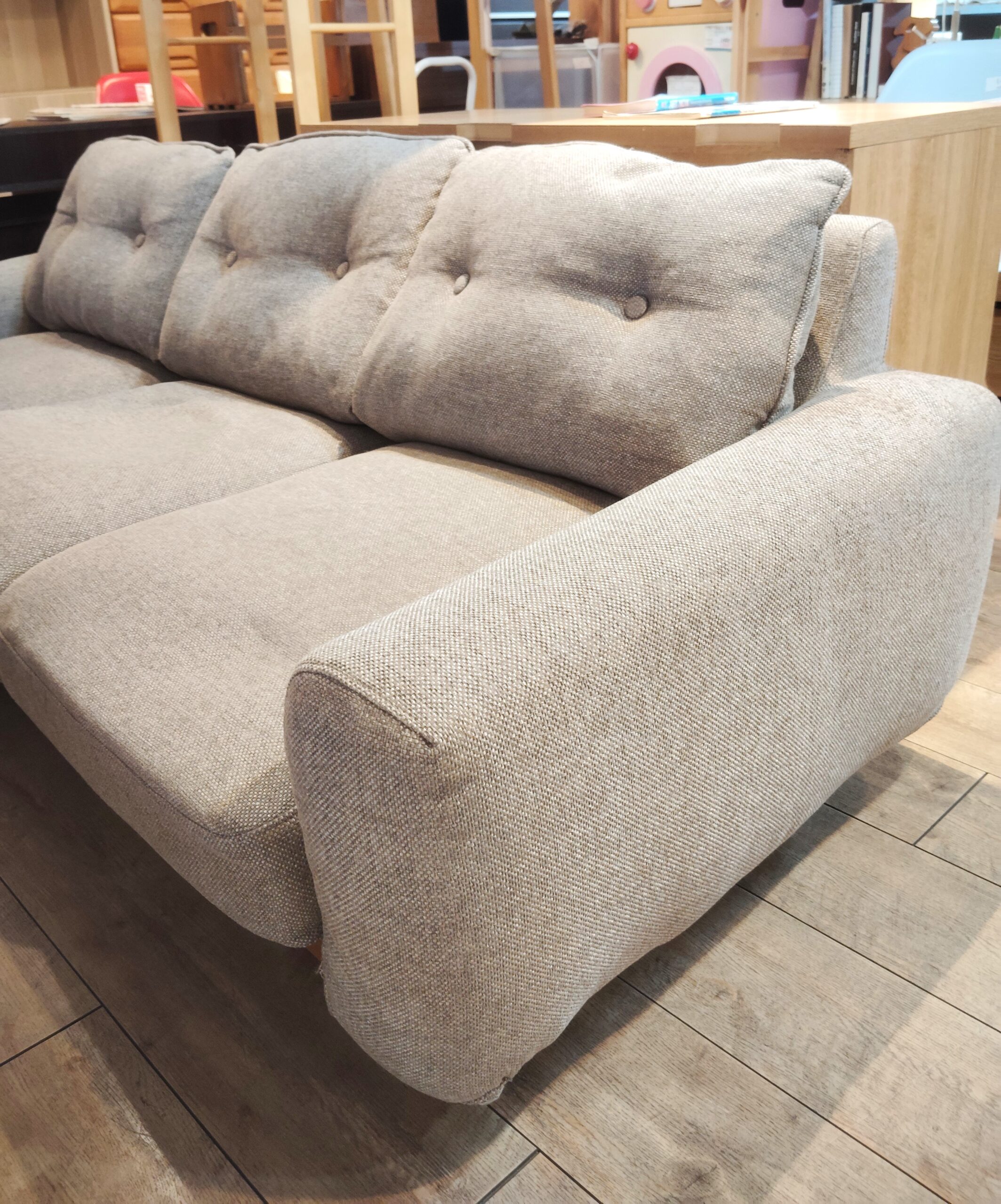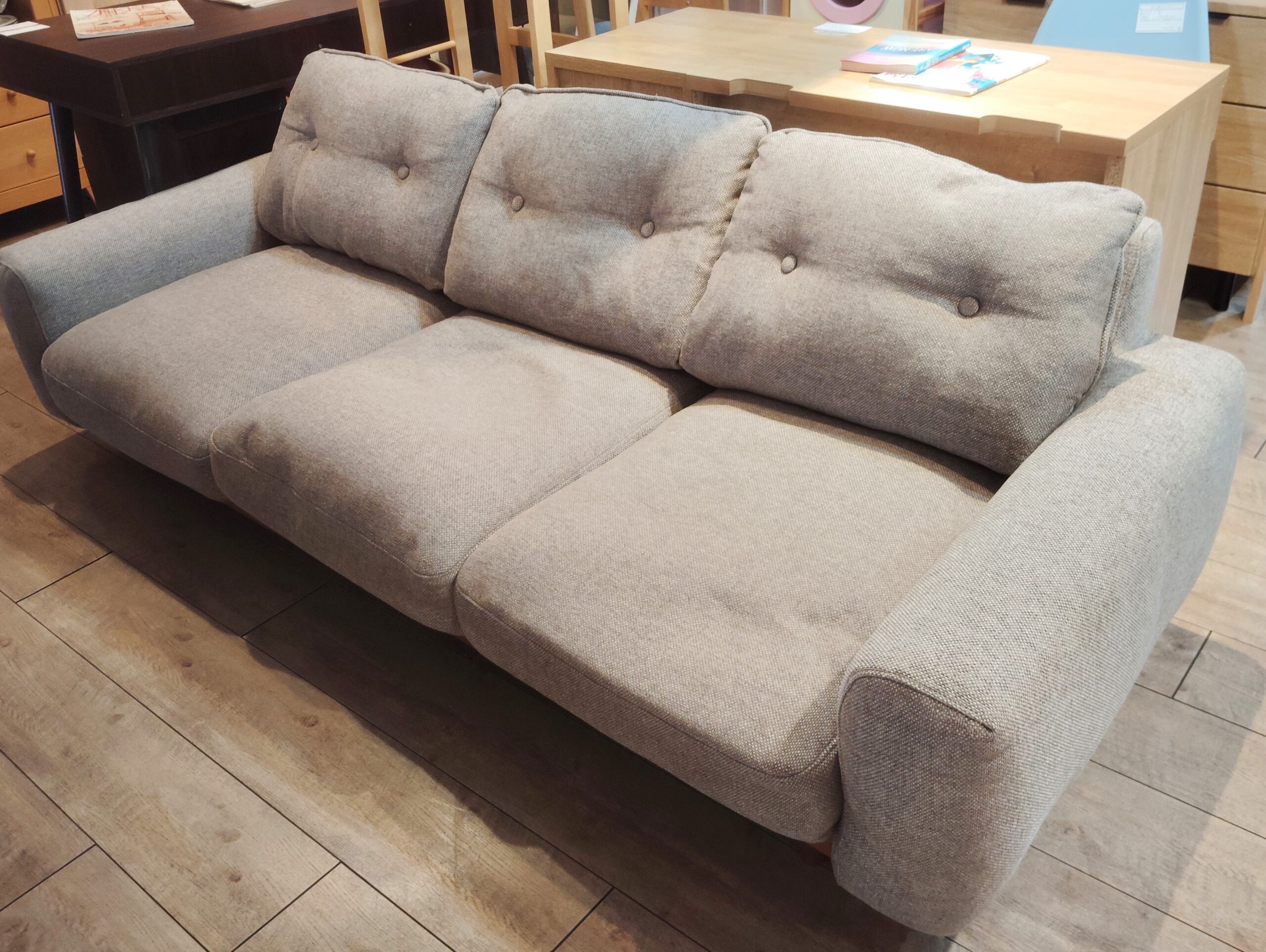 ◎背面クッションのボタンが可愛らしい、unicoのべサン、3シーターソファです。