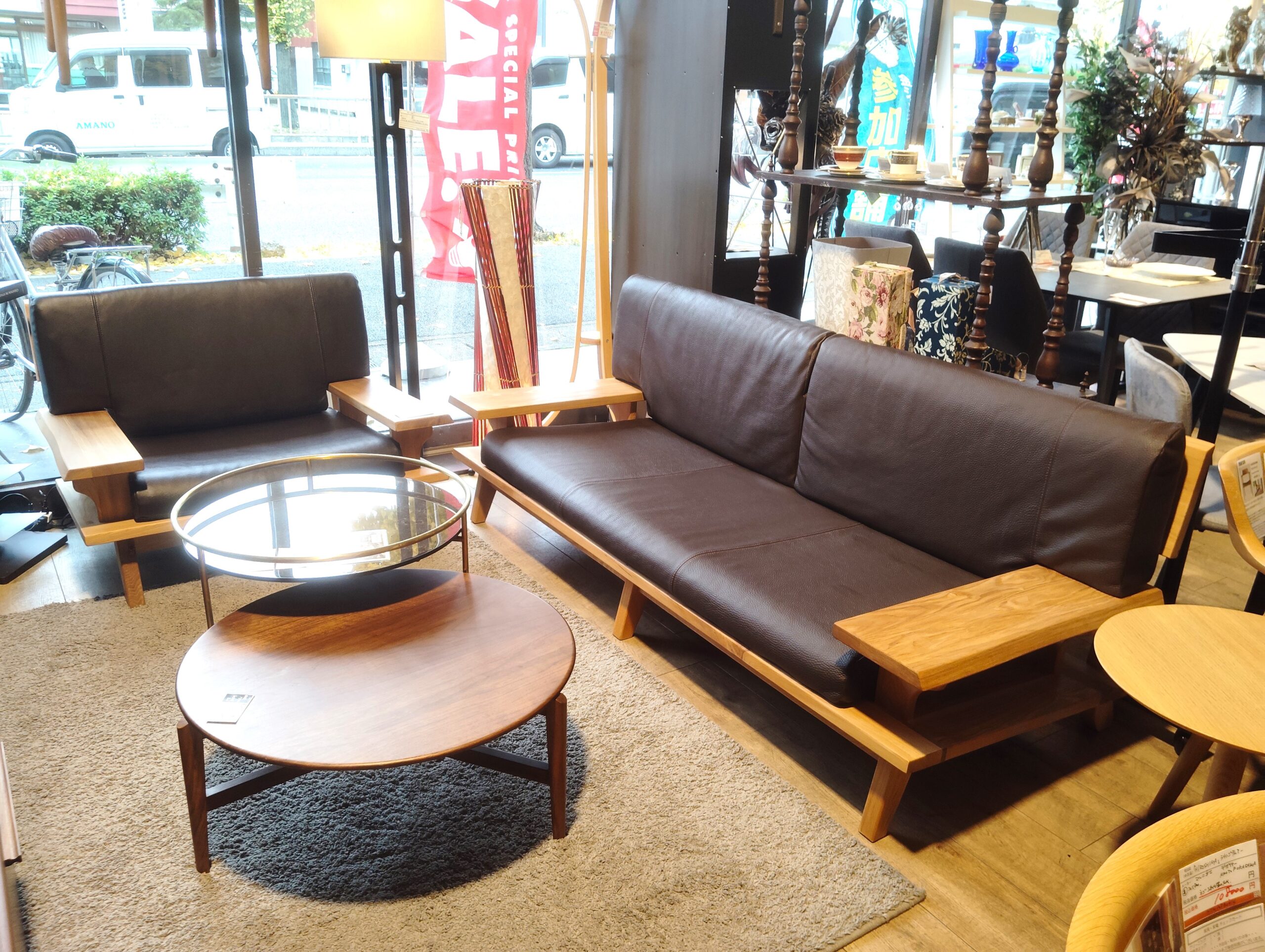 大森店より本日は、楠木 古彩シリーズ ワイドクッション 本革 ダークブラウン ニレ無垢材 1シーター 3シーターソファをご紹介です★