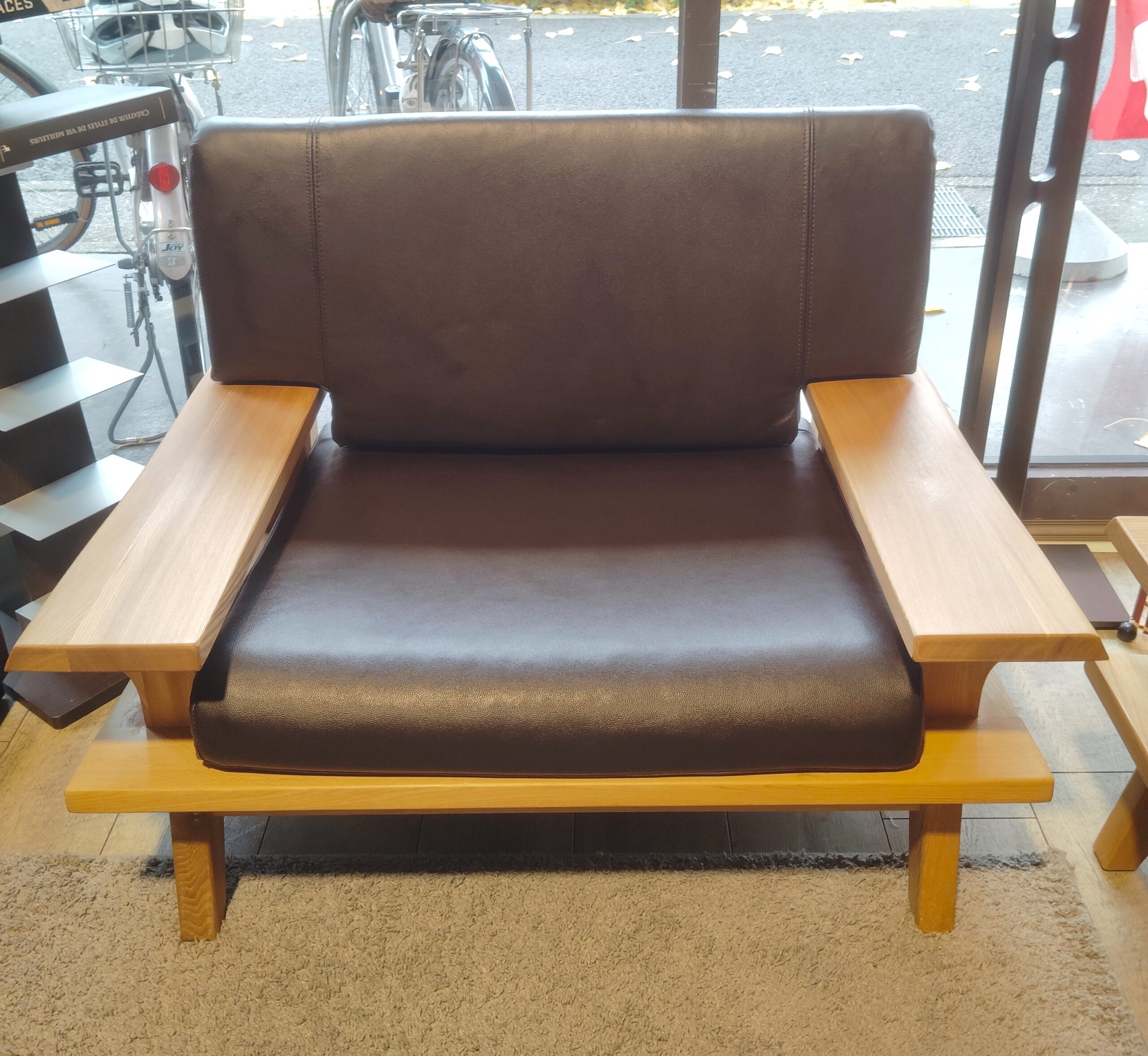 【中古品】楠木 古彩シリーズ ワイドクッション 本革 ダークブラウン ニレ無垢材 オイル塗装 1シーター 3シーターソファ 買取しました。25年12月8日