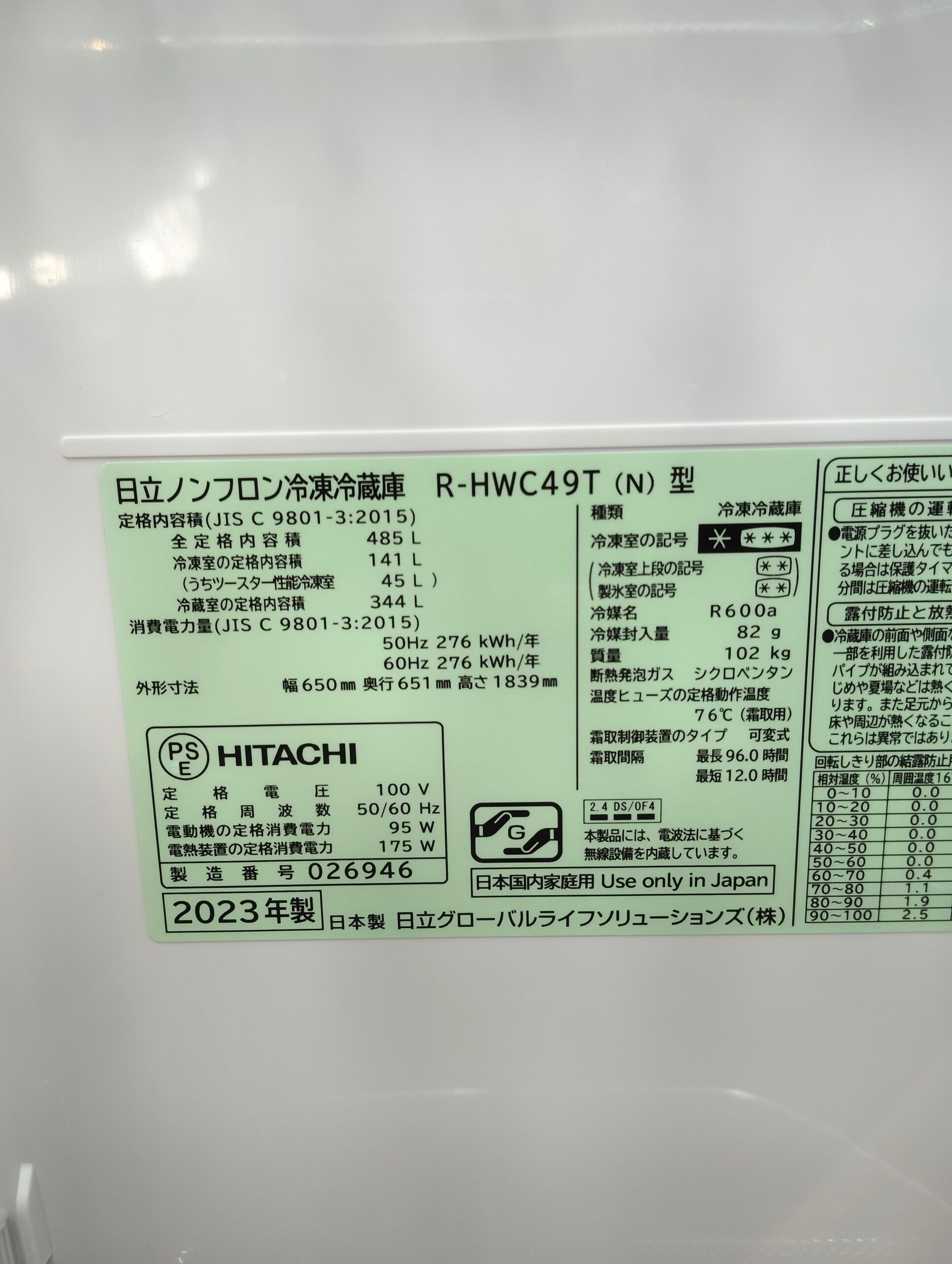【中古品】HITACHI 2023年製 R-HWC49T まるごとチルド ライトゴールド フレンチドア 観音開き 485L 6ドア 冷蔵庫 買取しました。25年12月16日