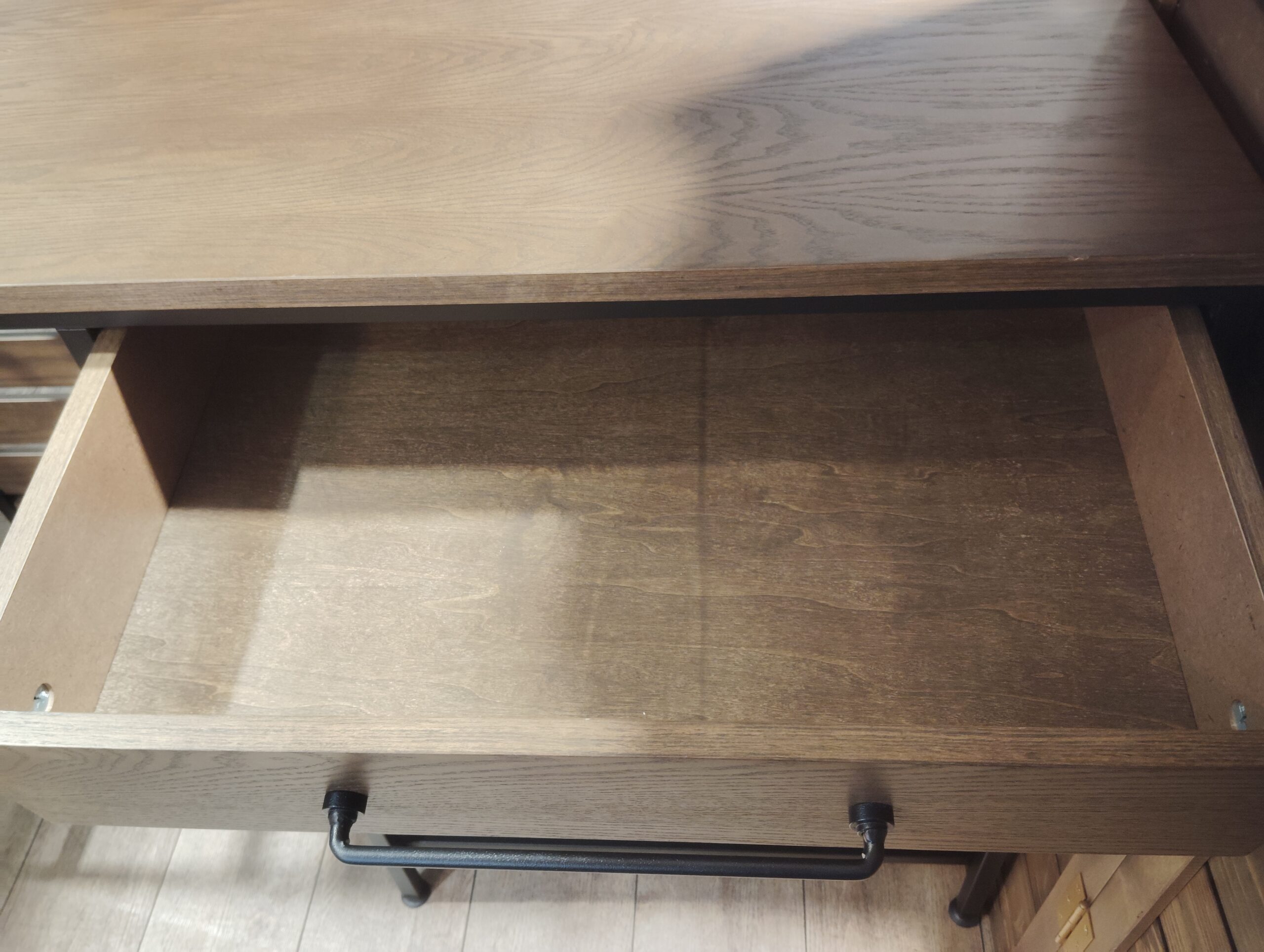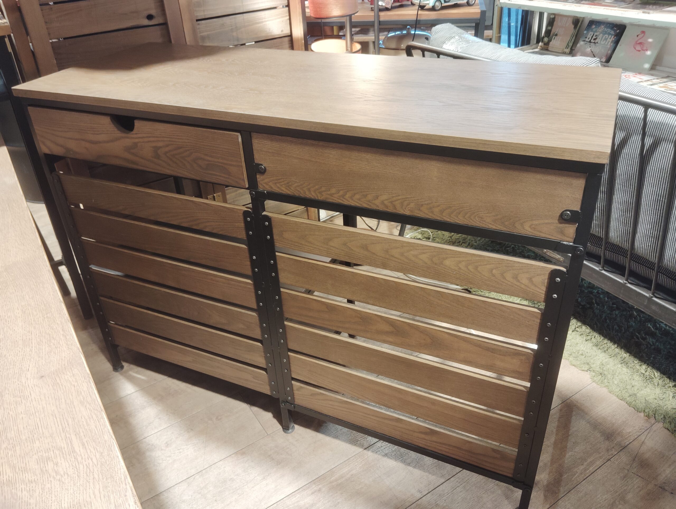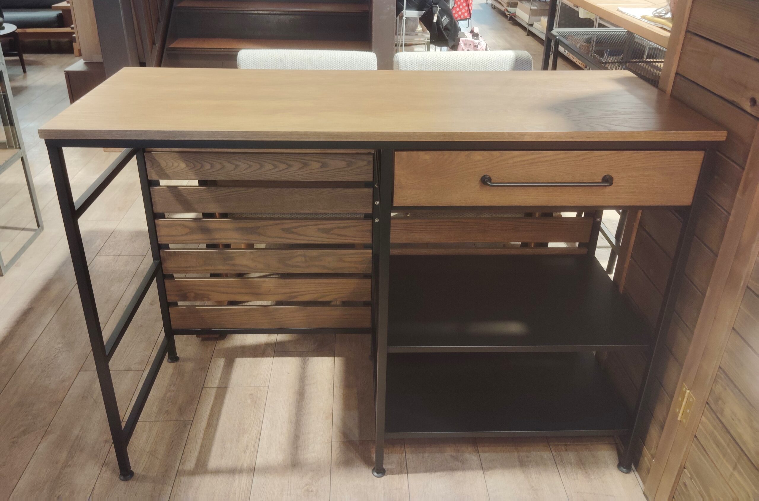 引き出しのアイアンの取っ手がインダストリアルスタイルにピッタリです。