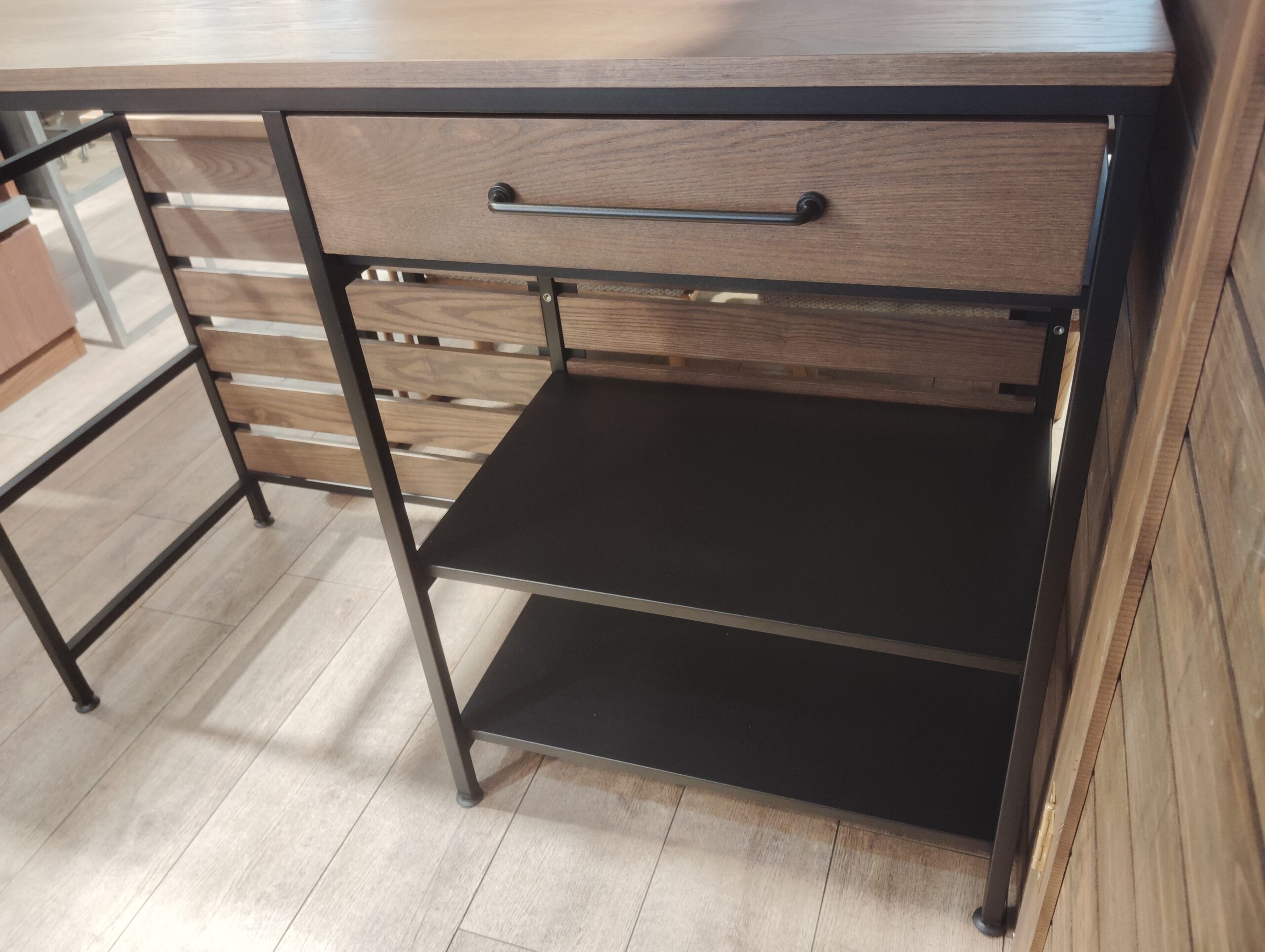 引き出し収納や家電設置に便利なスチール棚付き★