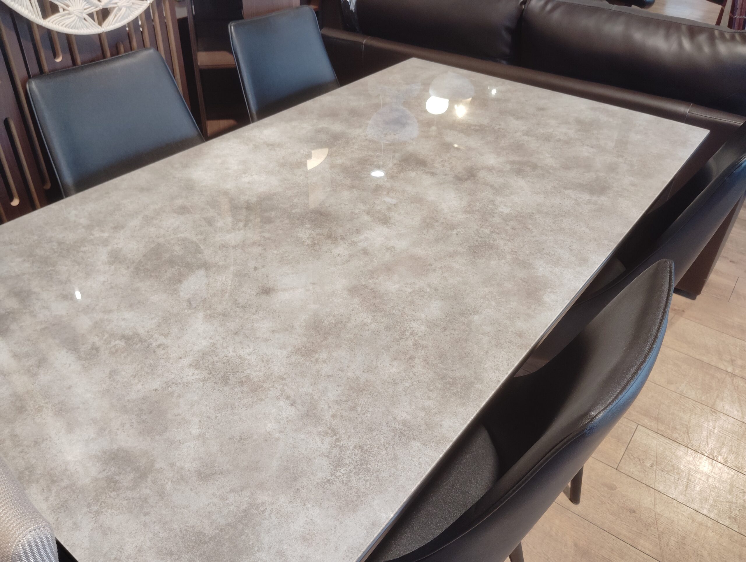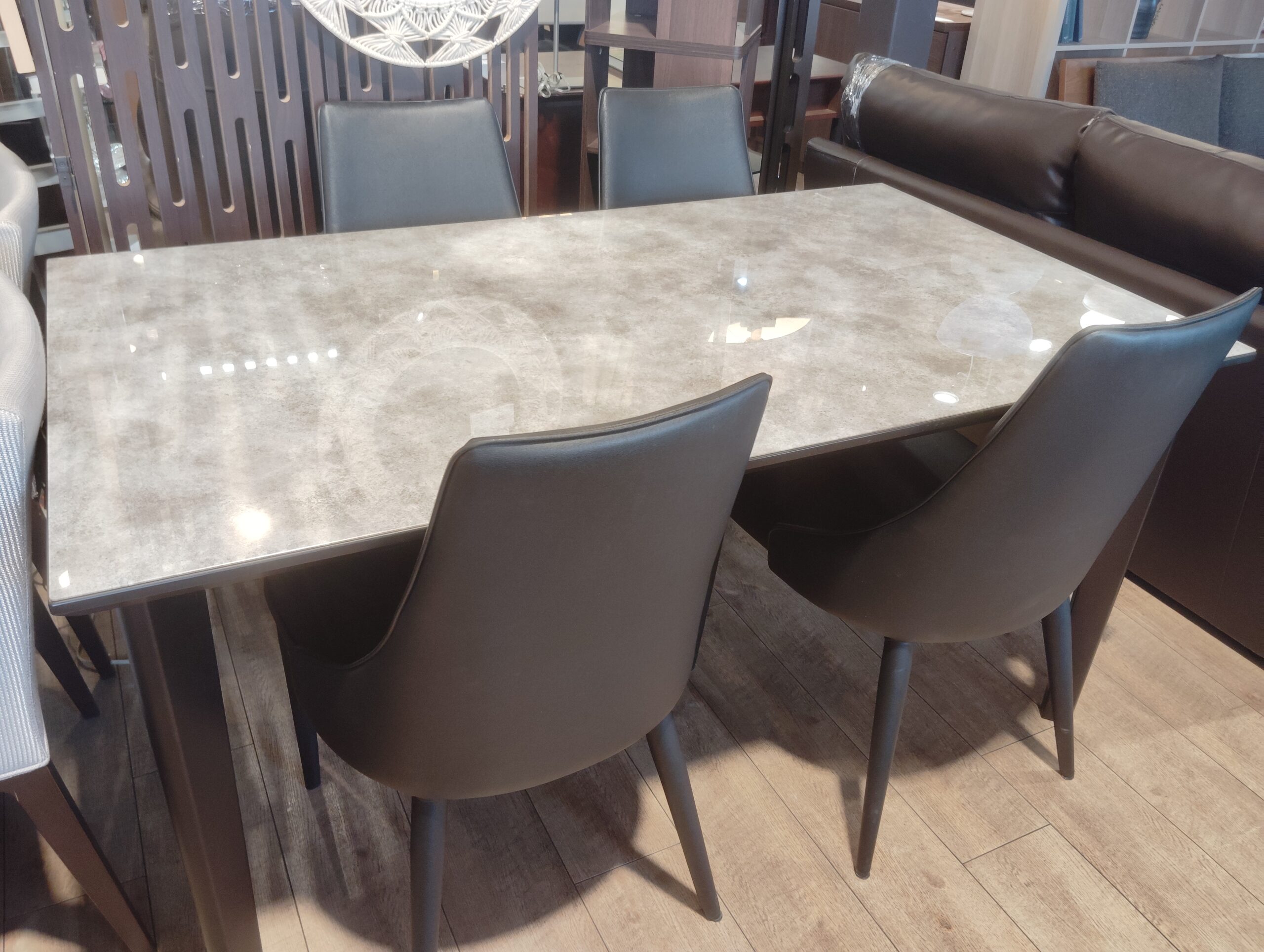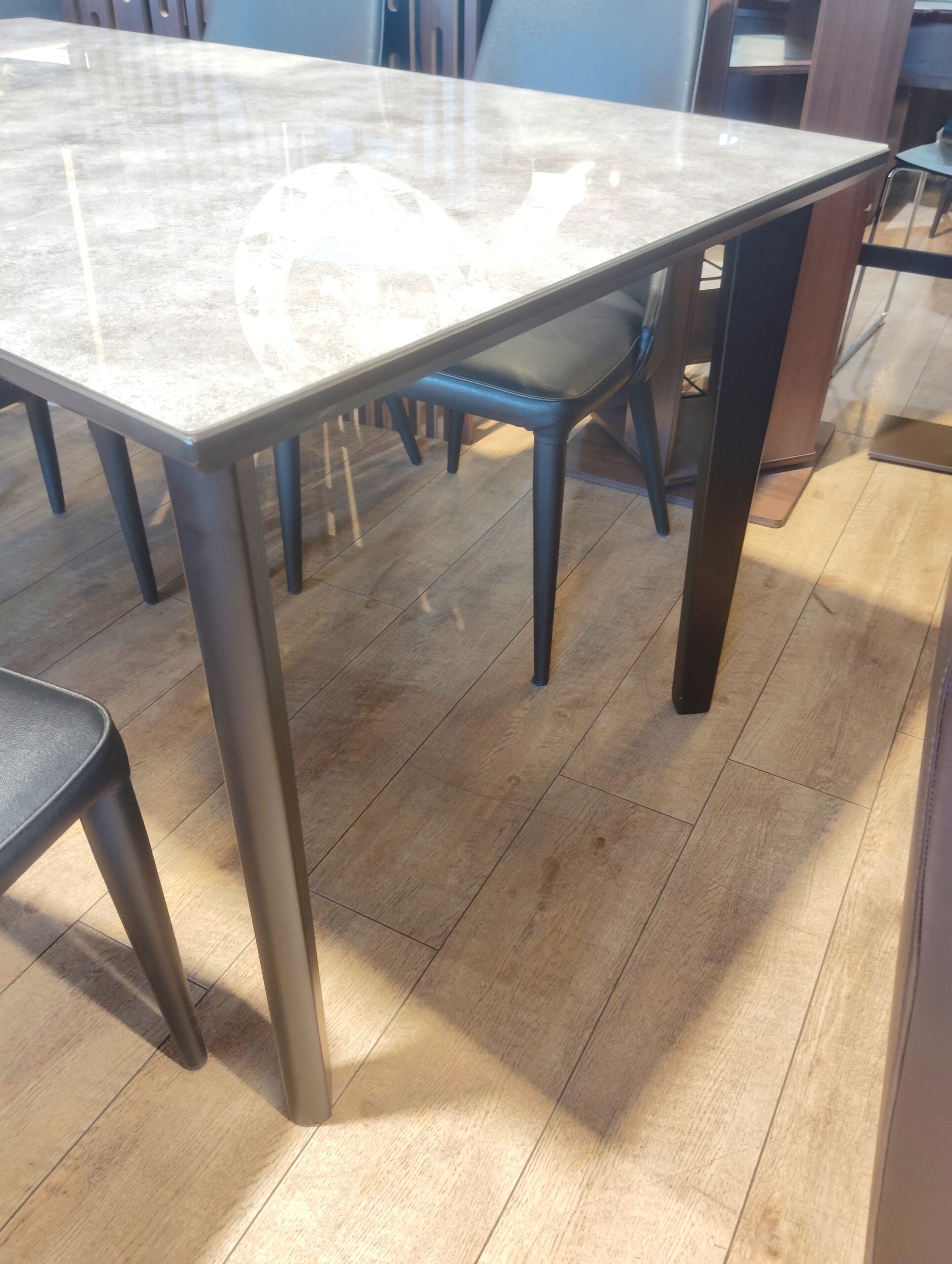 食卓セット ガラス天板 ブラック 合革 石柄 食卓テーブル スタイシッシュ 4本脚 GTテーブル