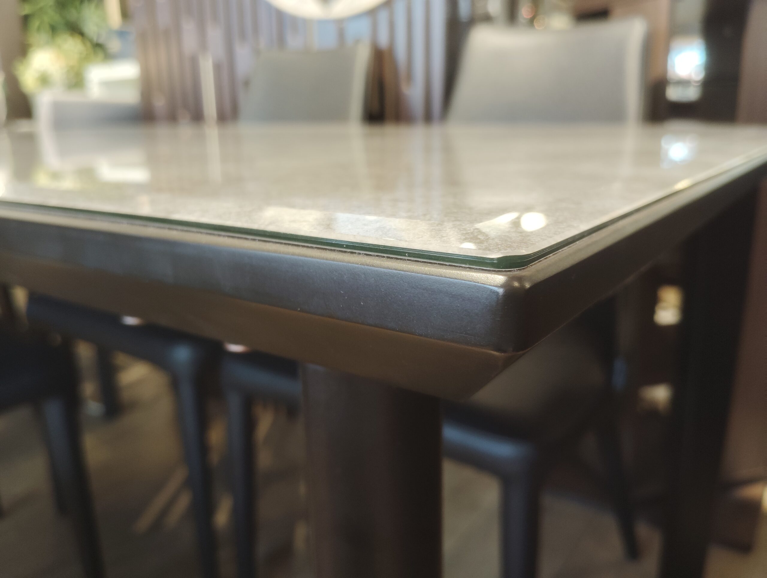 ◎強化ガラスを使用した、松田家具のGT-1500のダイニングテーブル。