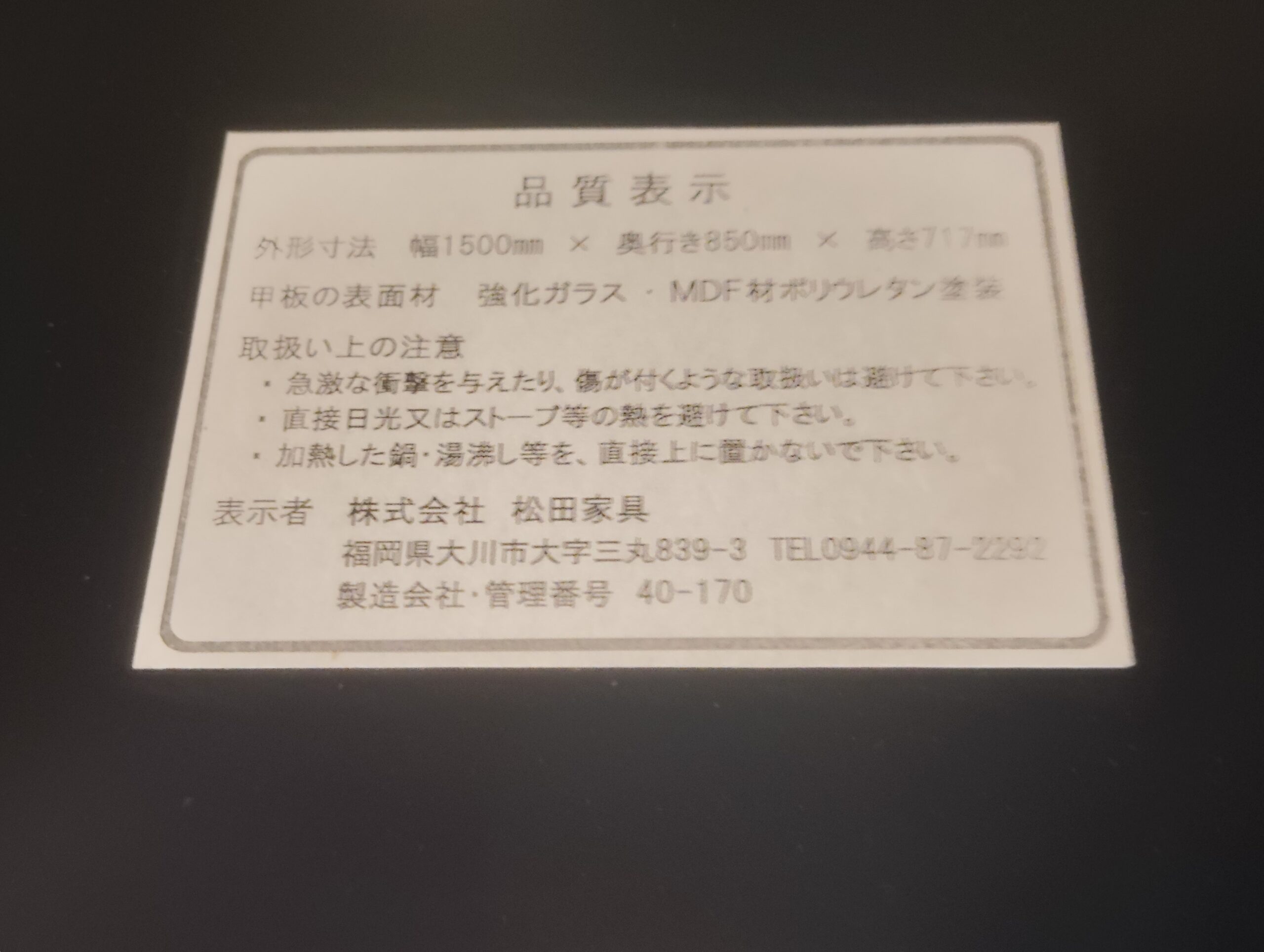 サイズ:W1500×D850×H720(㎜)