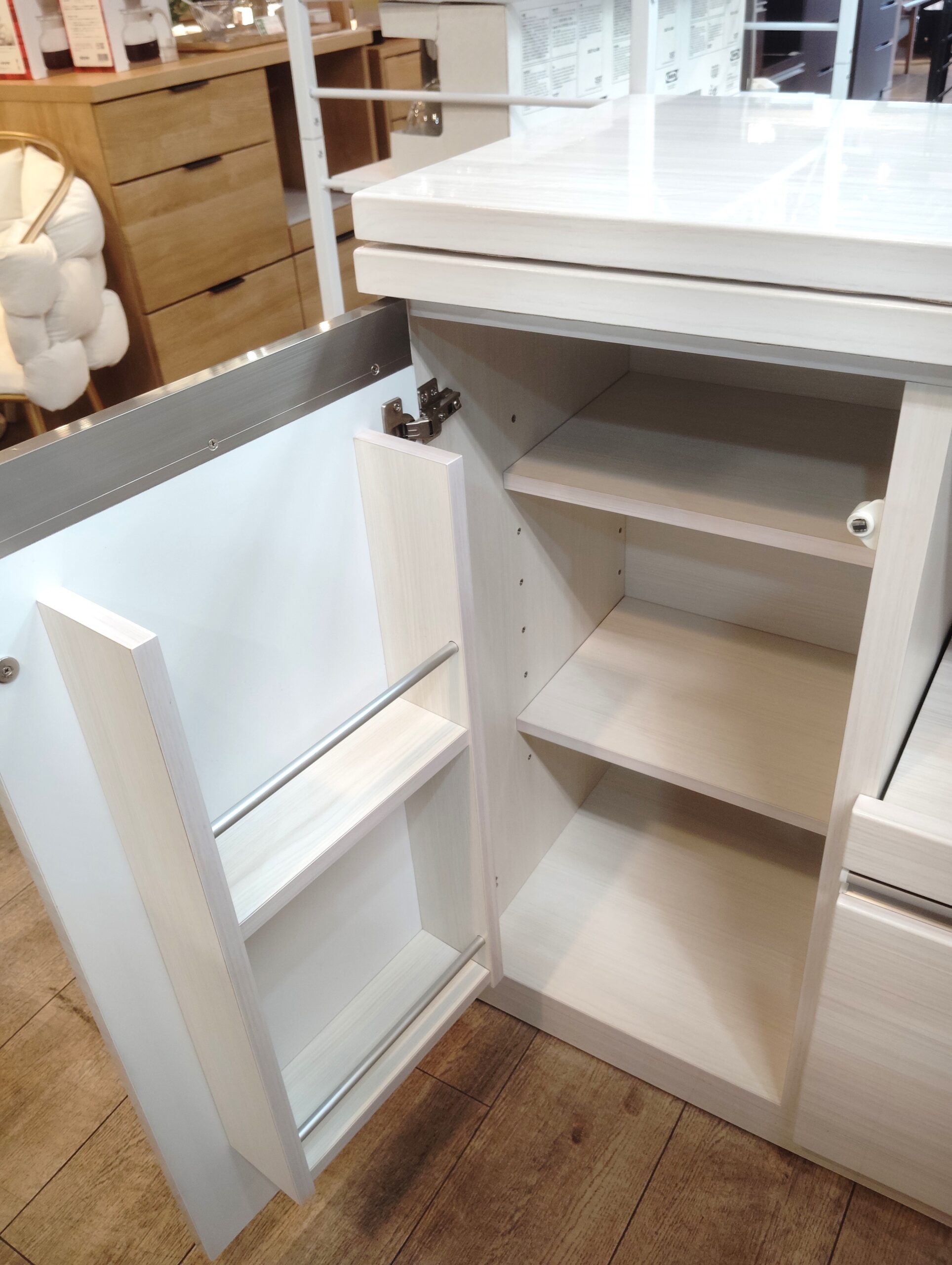 キッチン家具 収納家具 木目調 ハイグロス 背面化粧 間仕切り キッチンカウンター