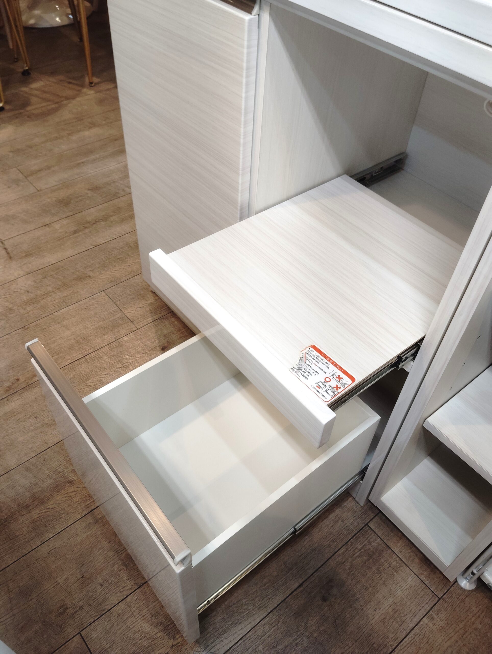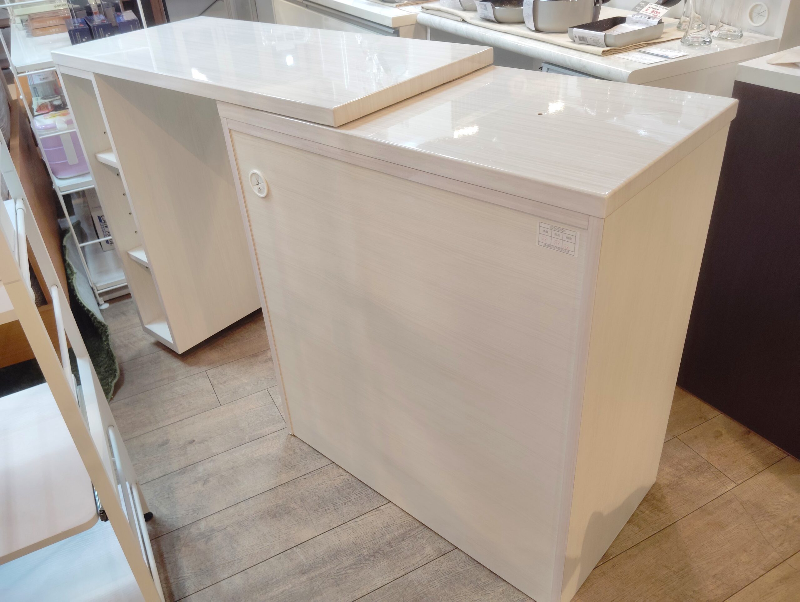 ◎伸ばして使うと空間が出来るので、ダストボックスを置いたり、チェアを設置して作業台にすることも出来ます。