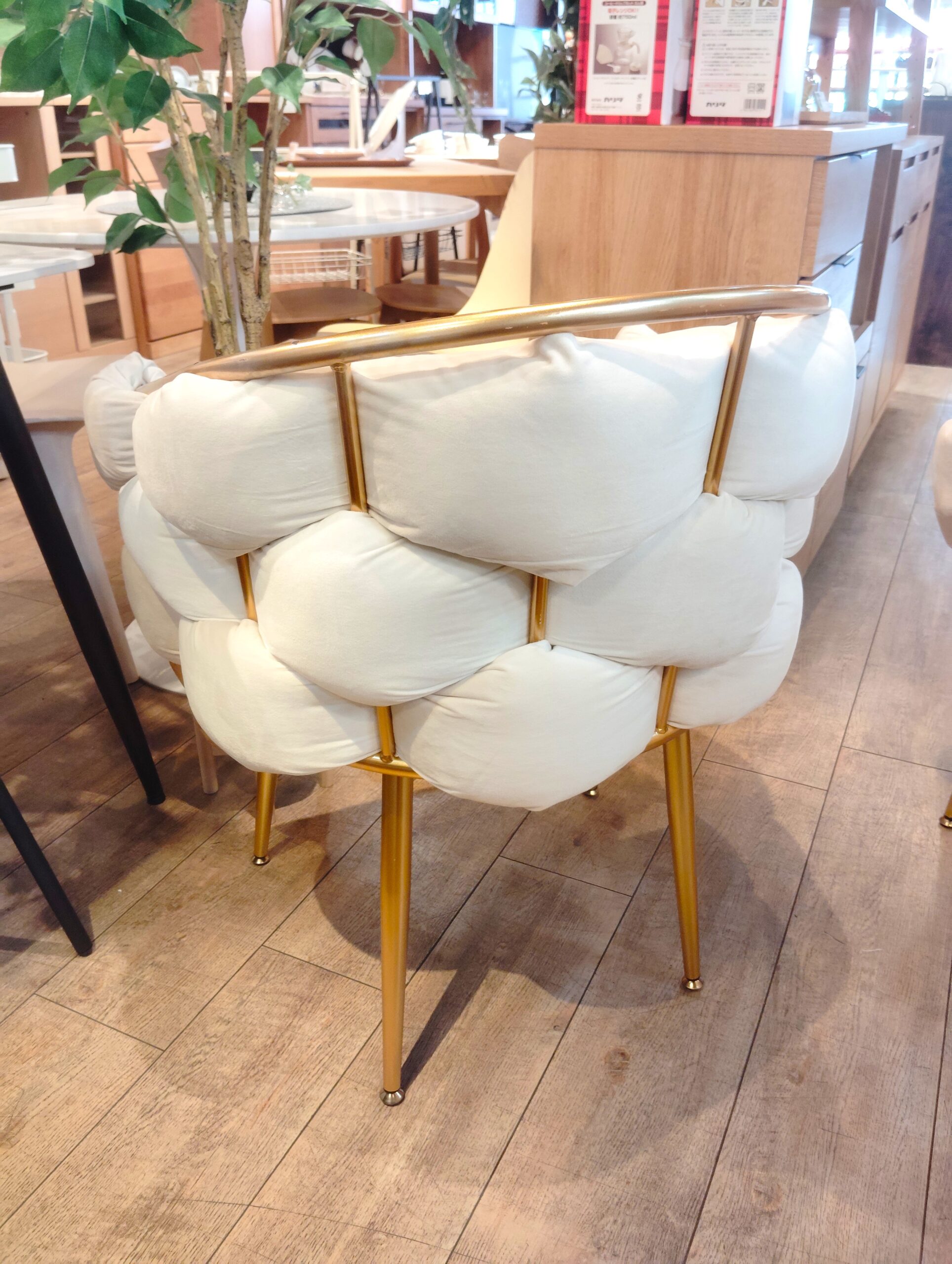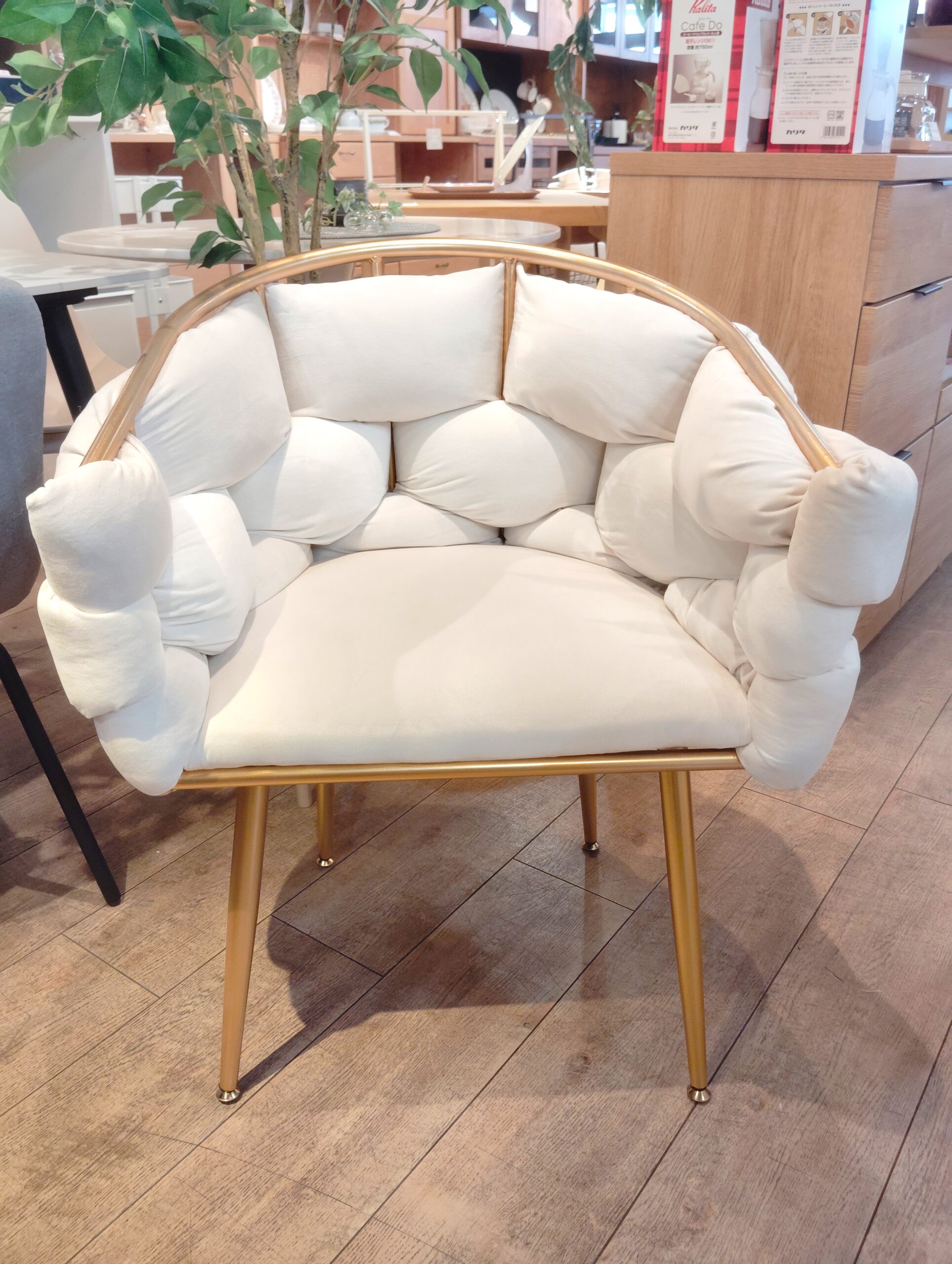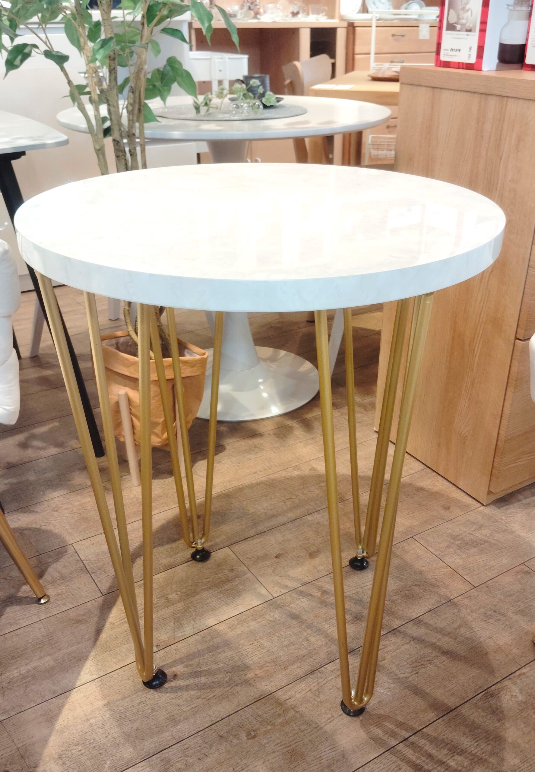 【中古品】ミニマリスト エレガント ラウンドテーブル 直径60㎝ 大理石調 ホワイト ゴールド フラッフィーチェア カフェテーブル3点セット 買取しました。25年12月25日