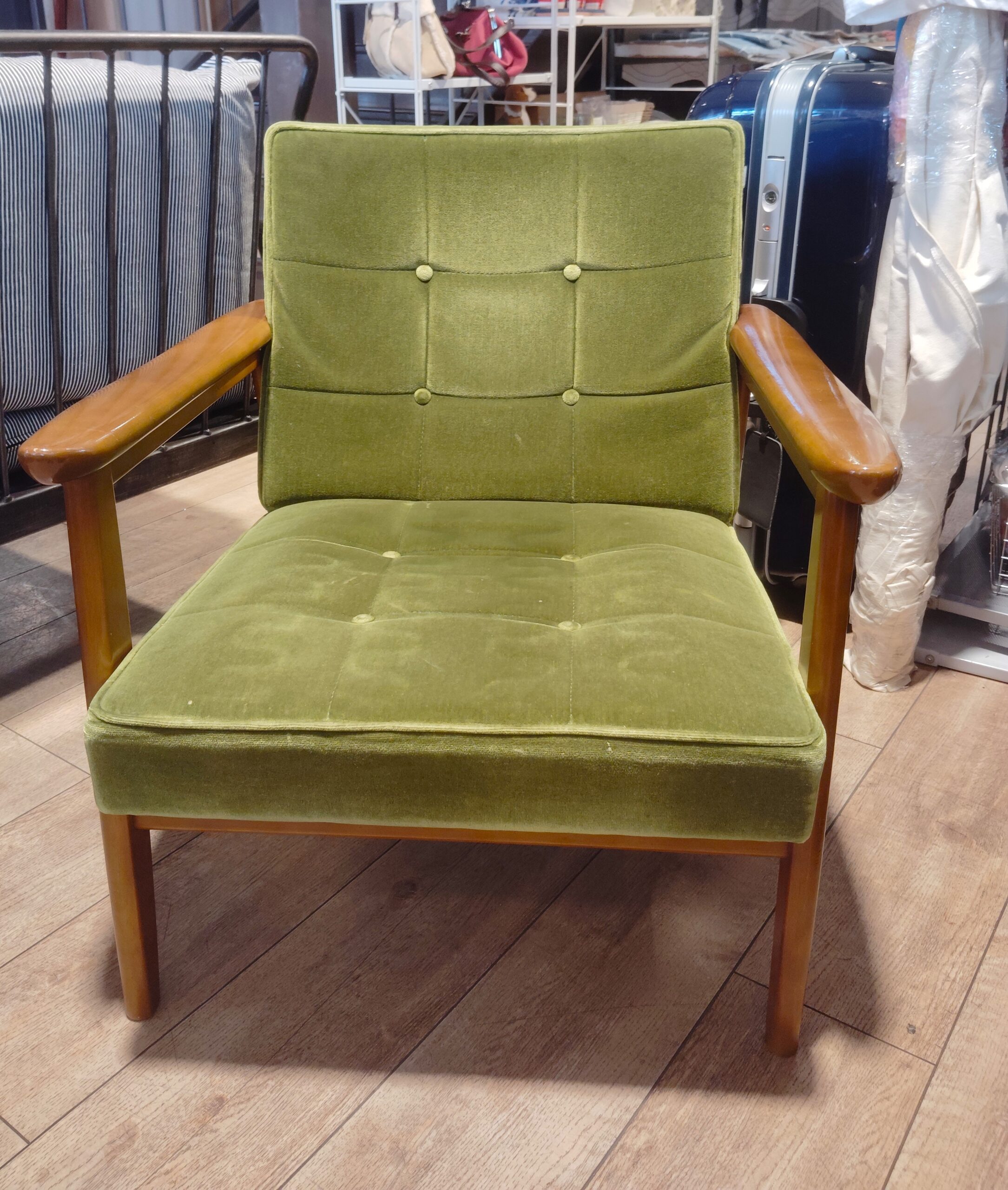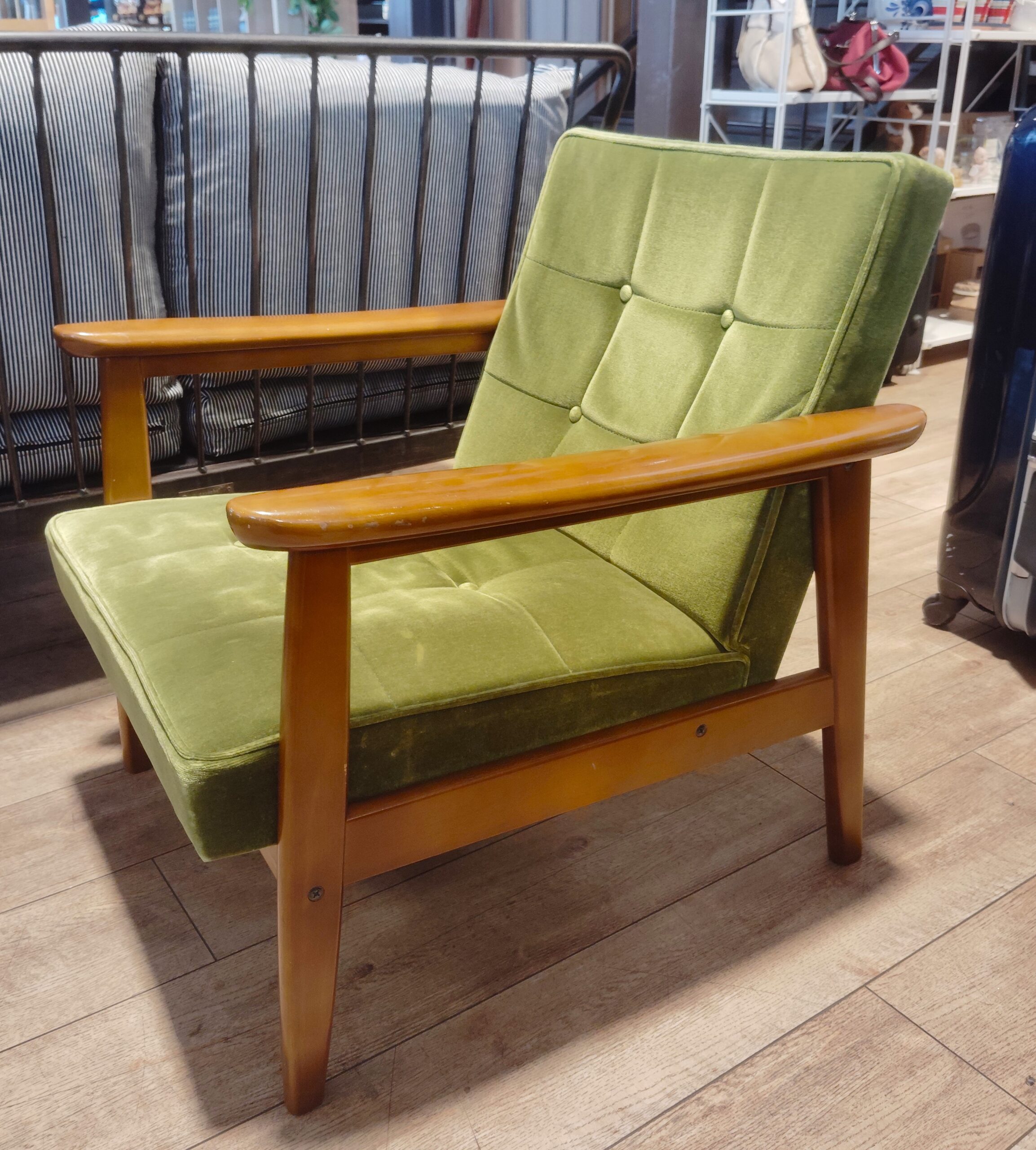 【中古品】カリモク60 モダン 和モダン レトロ家具 モケットグリーン 1シーター Kチェア リビングテーブル 買取しました。26年1月6日