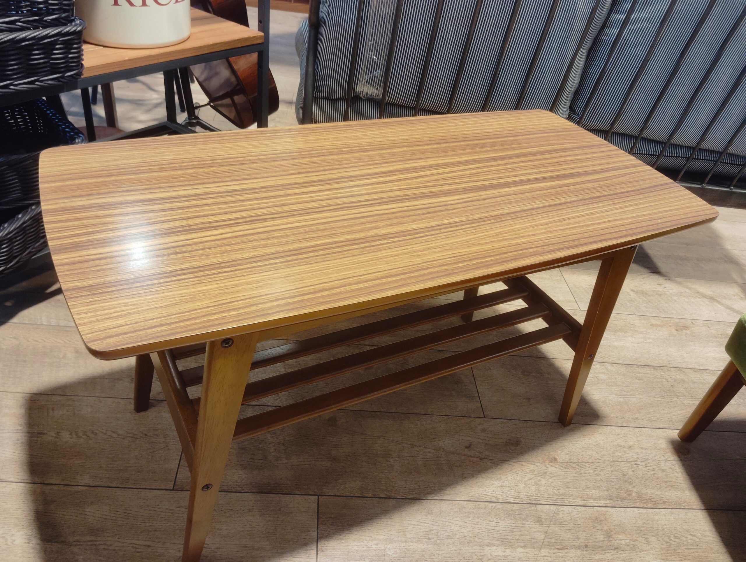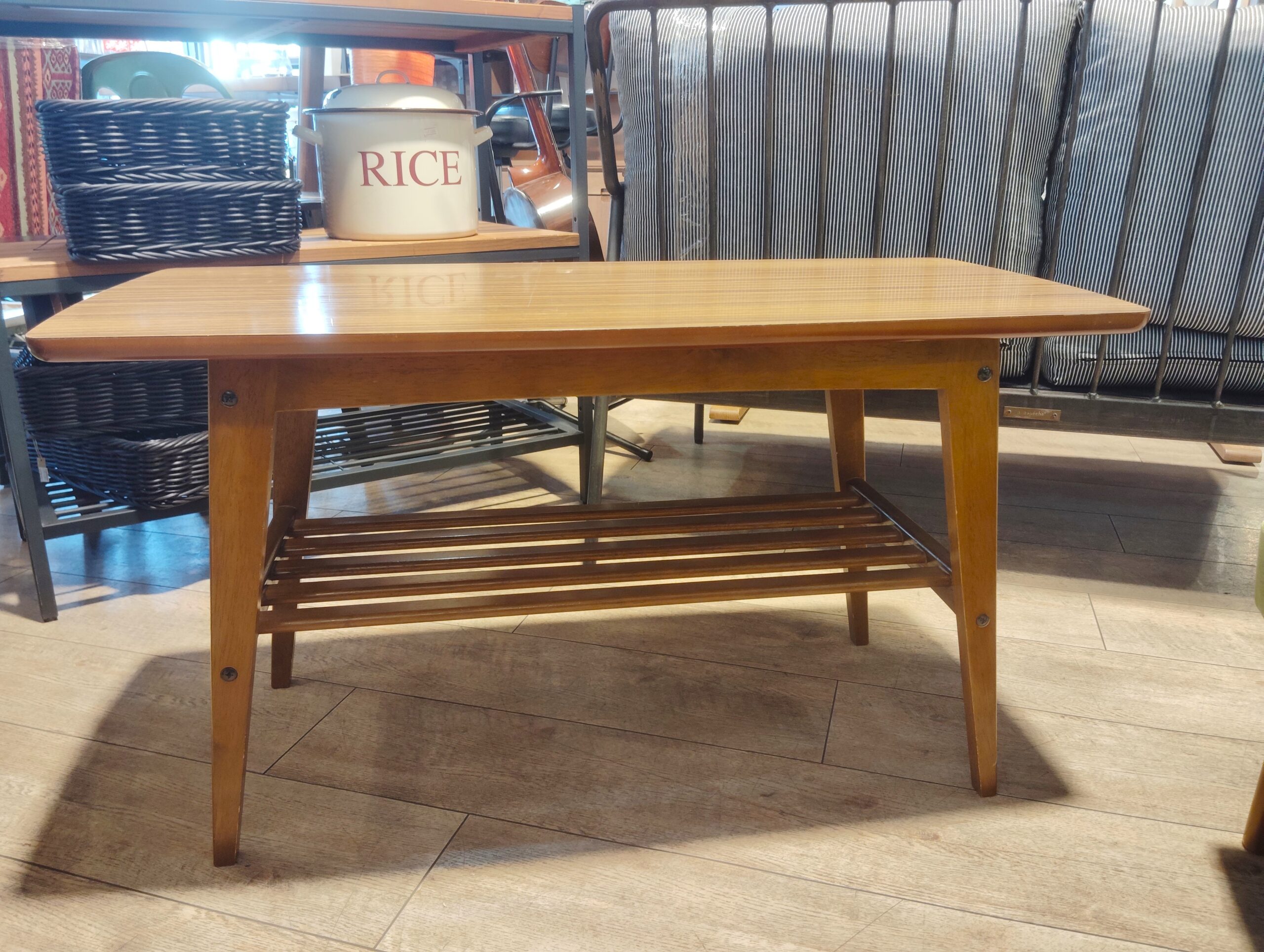 下に棚板が付いているので、ちょっとした小物が置ける、便利なリビングテーブルです。