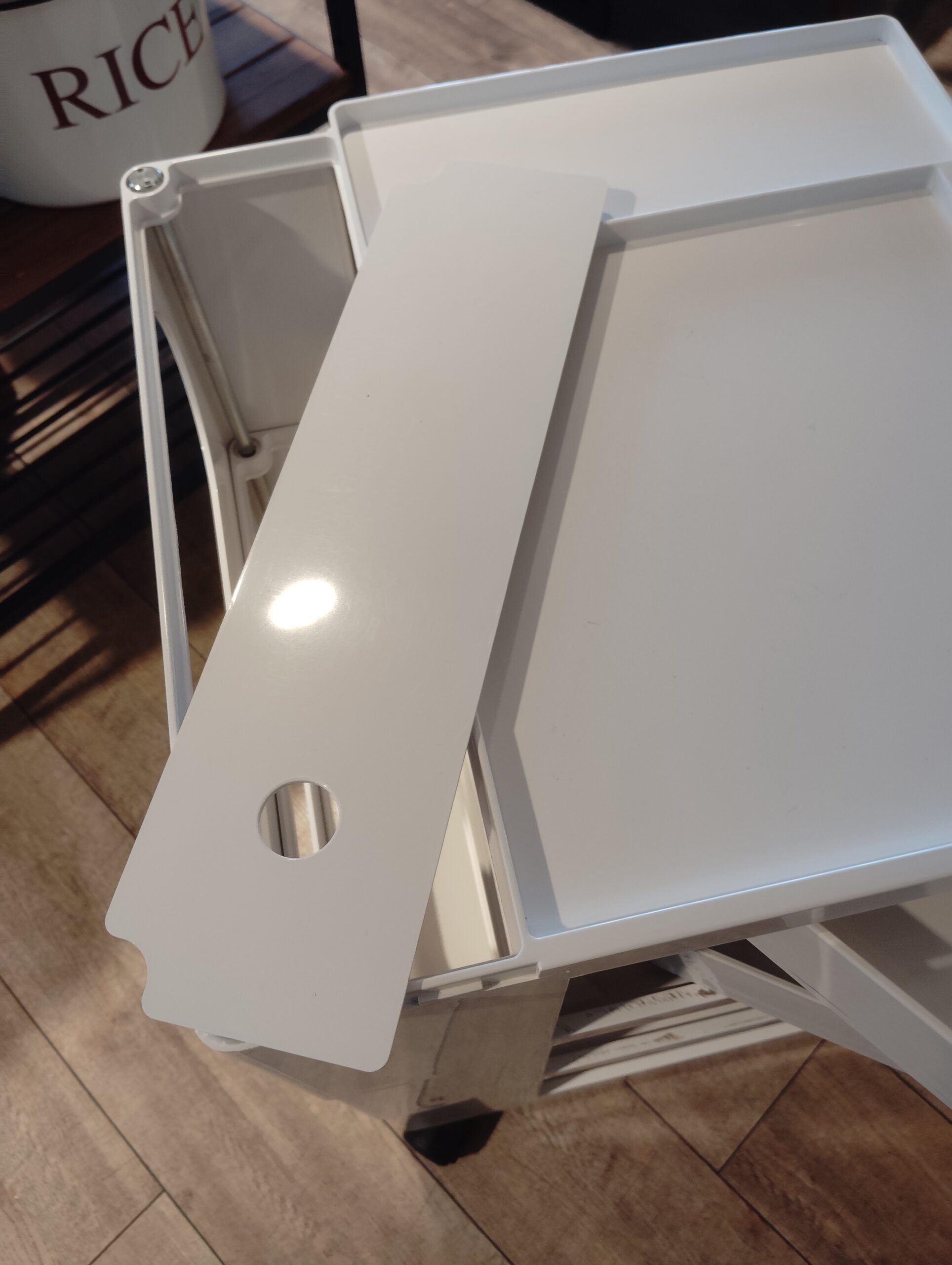 穴が開いた部分は取り外しが出来るので、背の高い小物が収納出来ます。