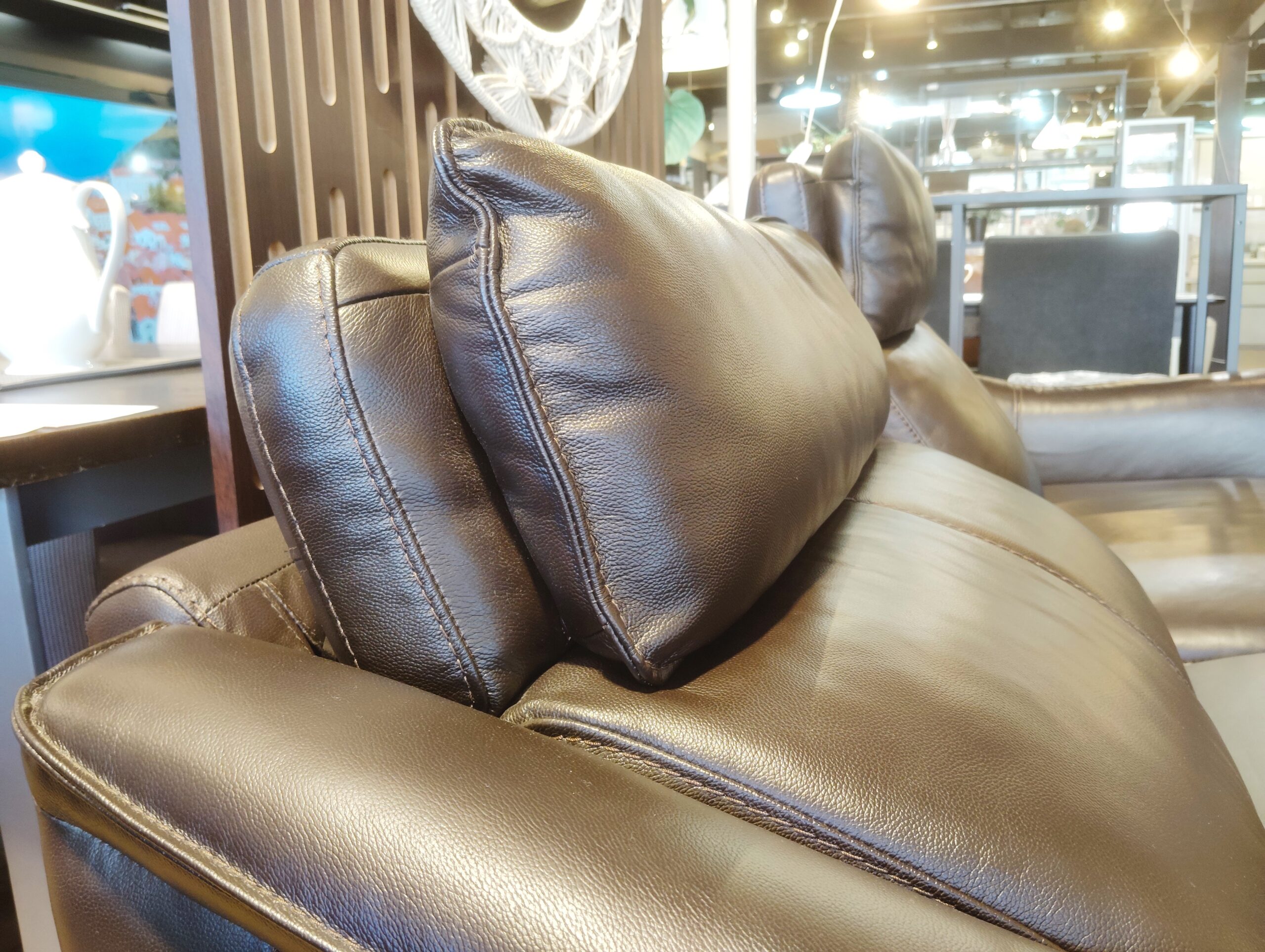 ダークブラウンの落ち着いた本革(一部合革)のデザインがインテリアの邪魔をしません。