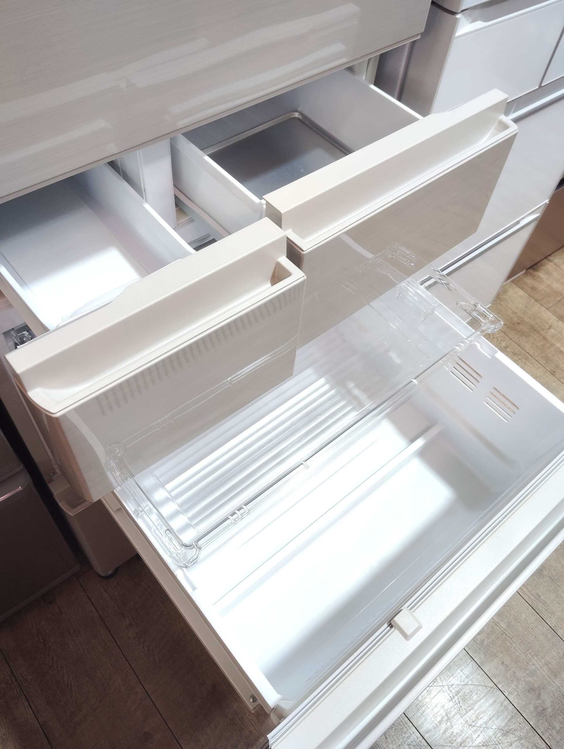 冷蔵庫のコンプレッサーを最上段に配置することで、上段の棚が使いやすくなり、下段(野菜室や冷凍室)に広いスペースと奥行きを確保できるのが特徴です。
