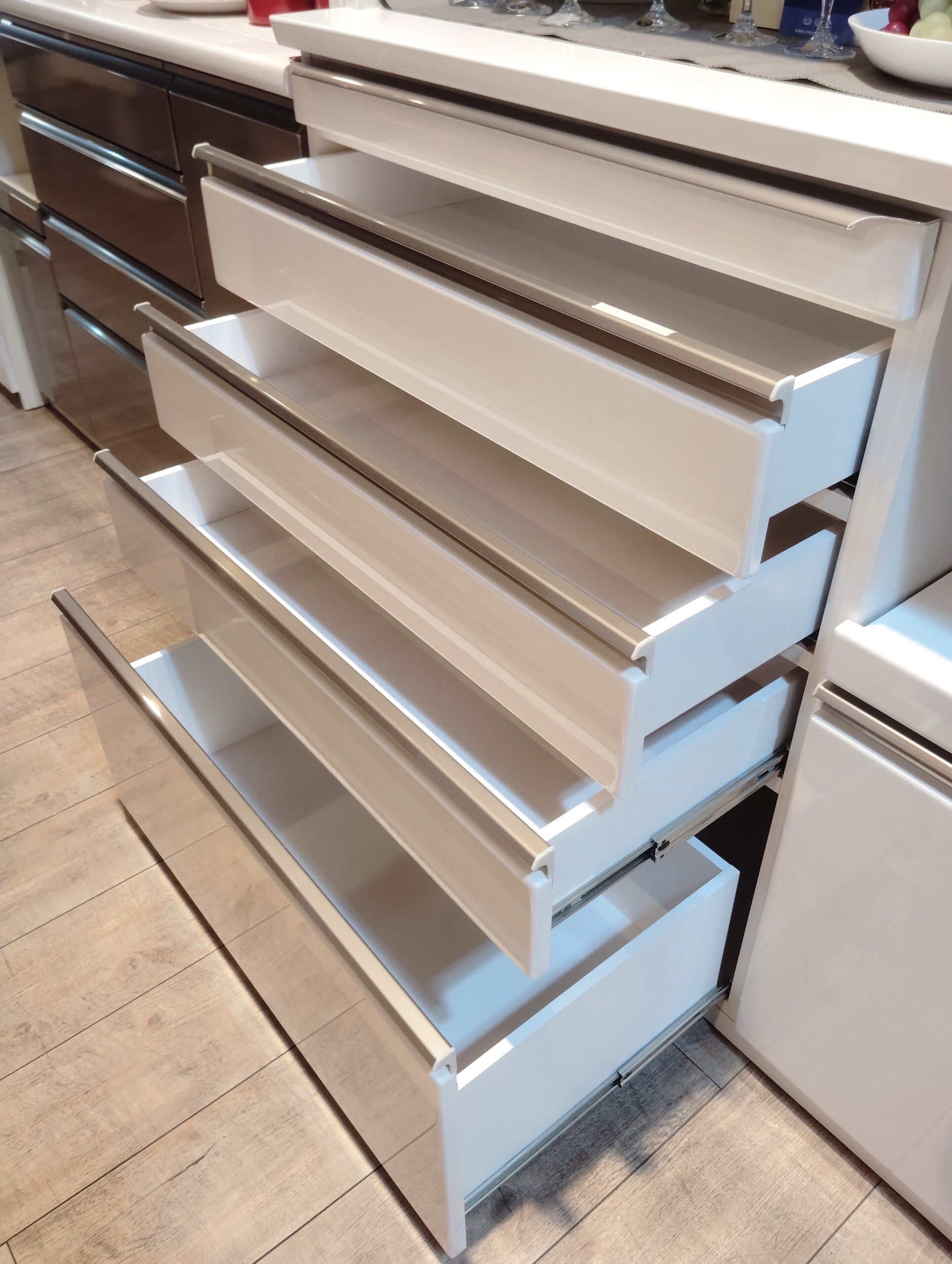 ◎非透過性ガラスの食器スペース。