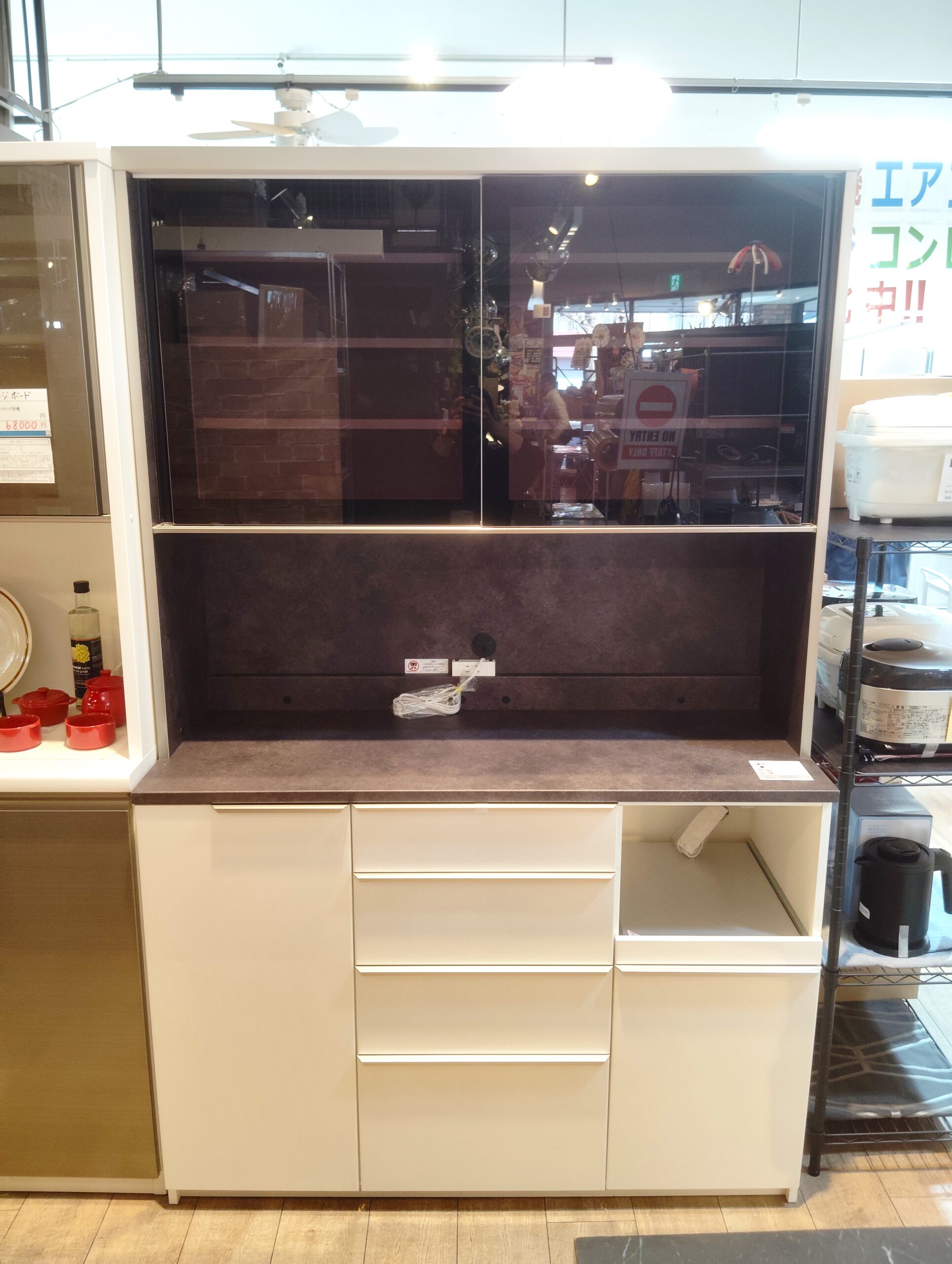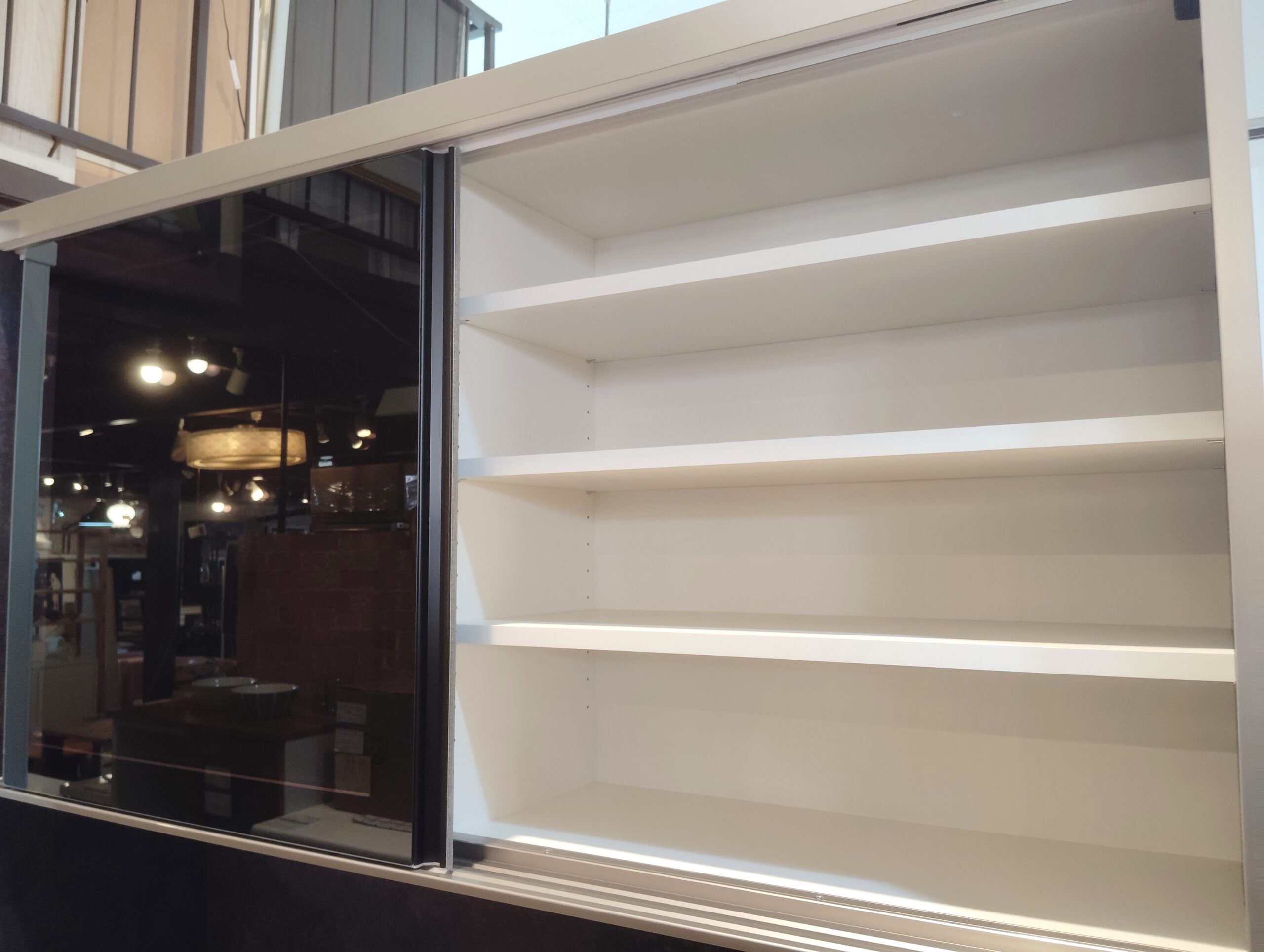 ◎非透過性のブラック強化ガラスの食器スペース。