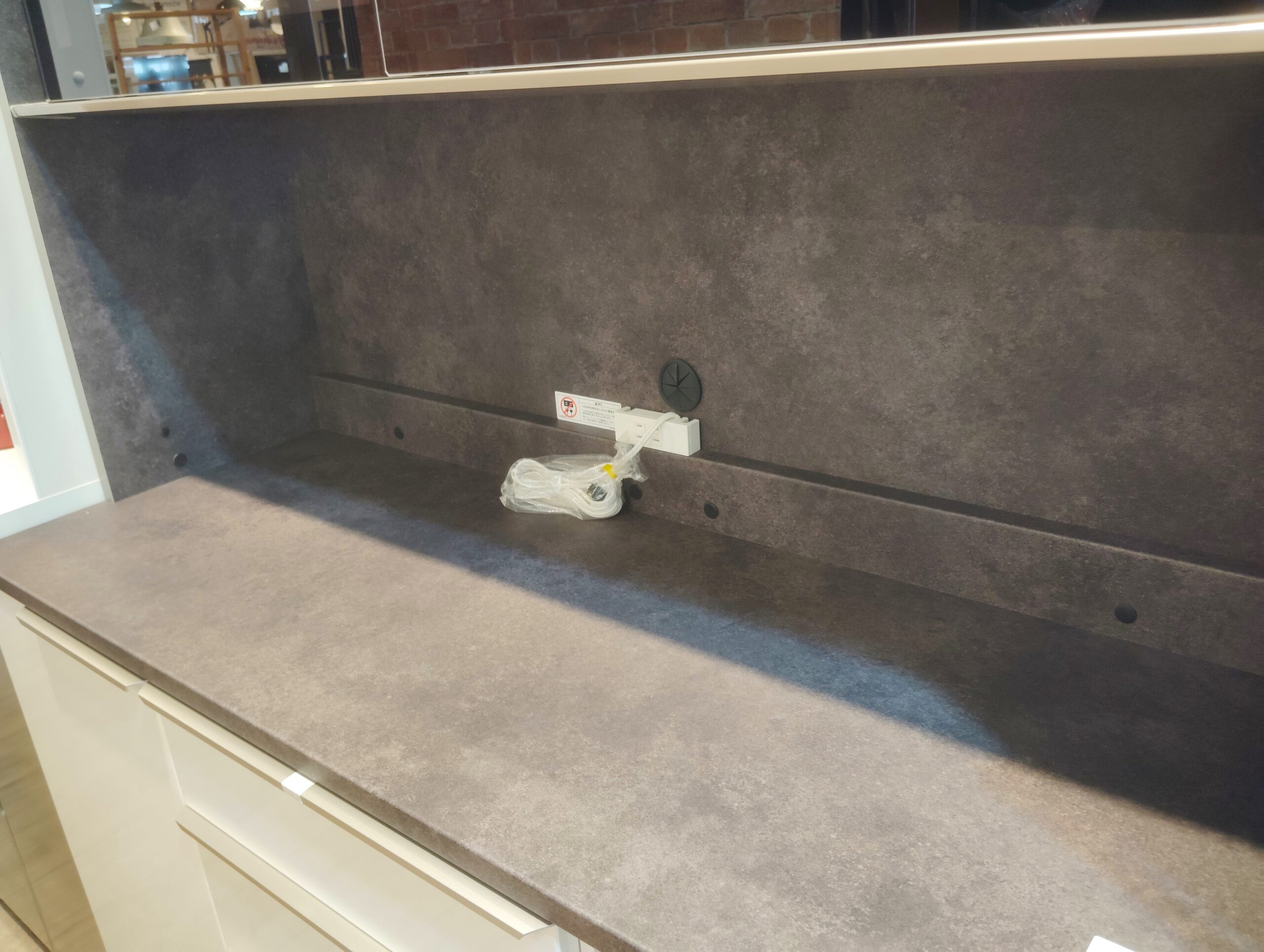 ◎オープン家電スペースには、ダーク色のセラミカネロ仕様。