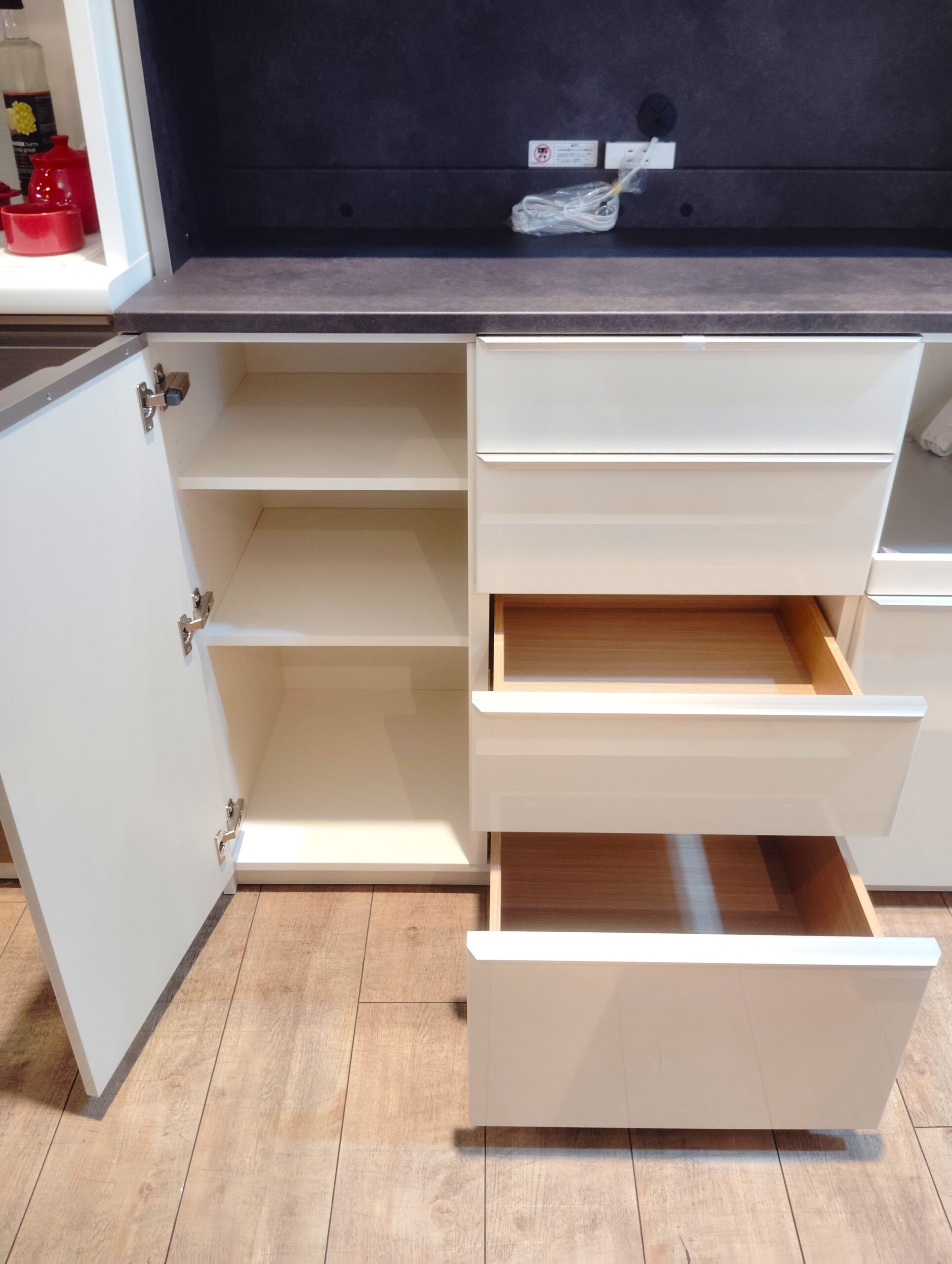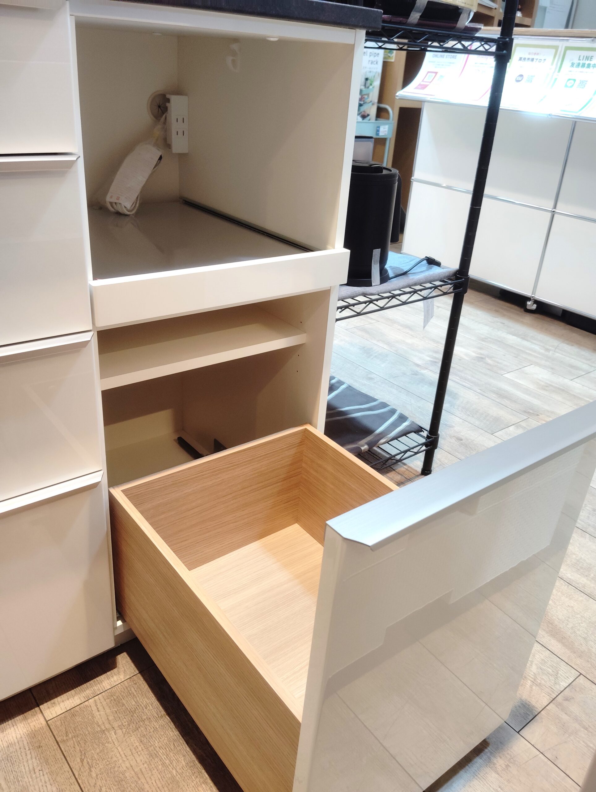 フルオープンの引き出しで、中身が見やすい収納スペースです。