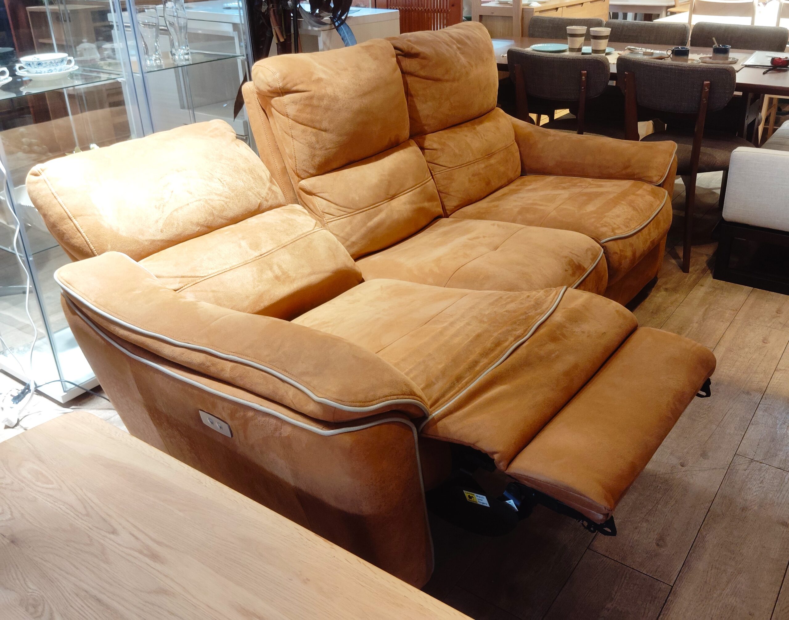 リビング家具 三人掛け テーブル付き ブラウン系 茶系 キャメル ソファ 3シーター 電動ソファ