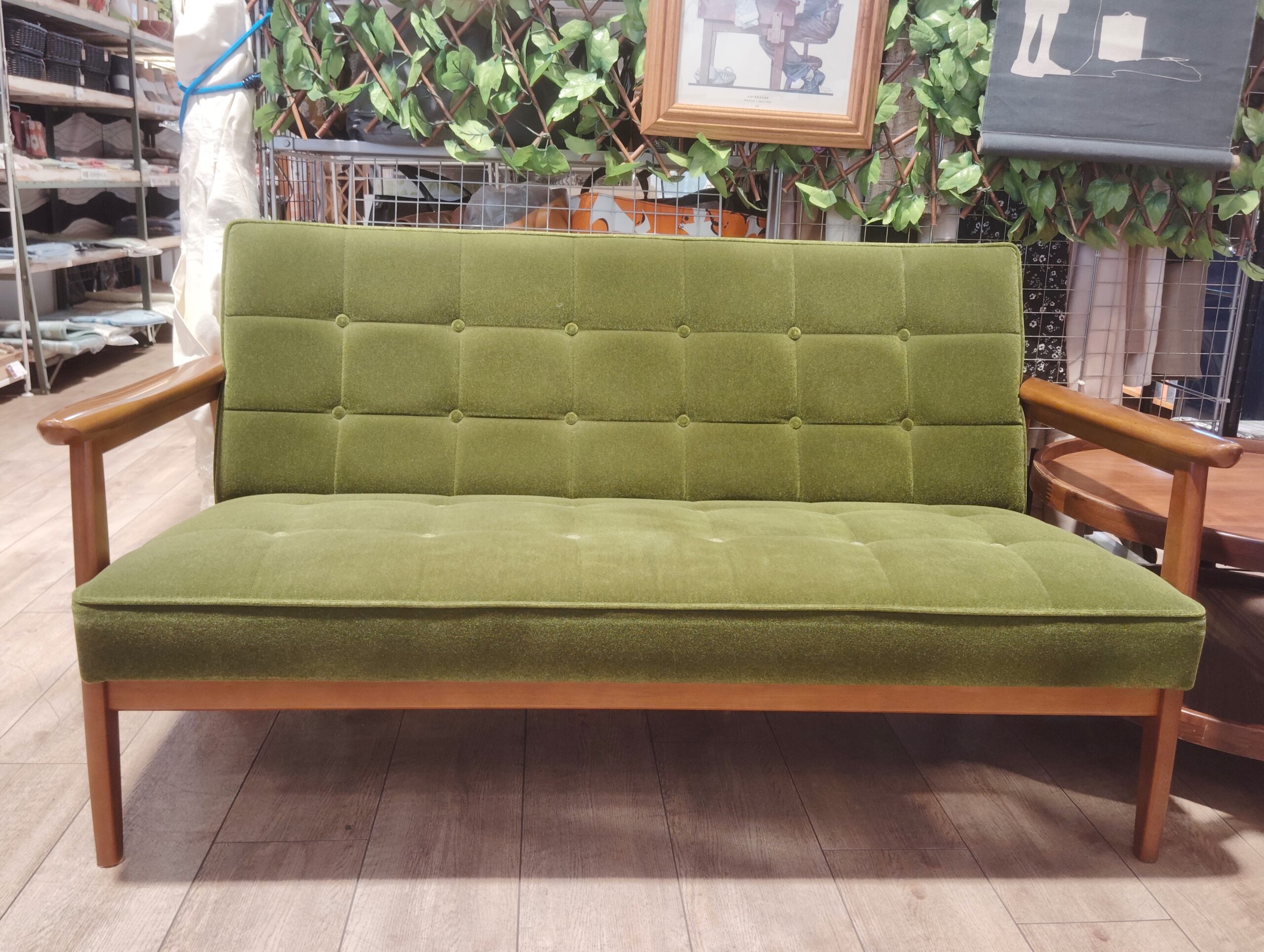 多少の起毛のある、モケットグリーンは、肌触りもいいお品です。