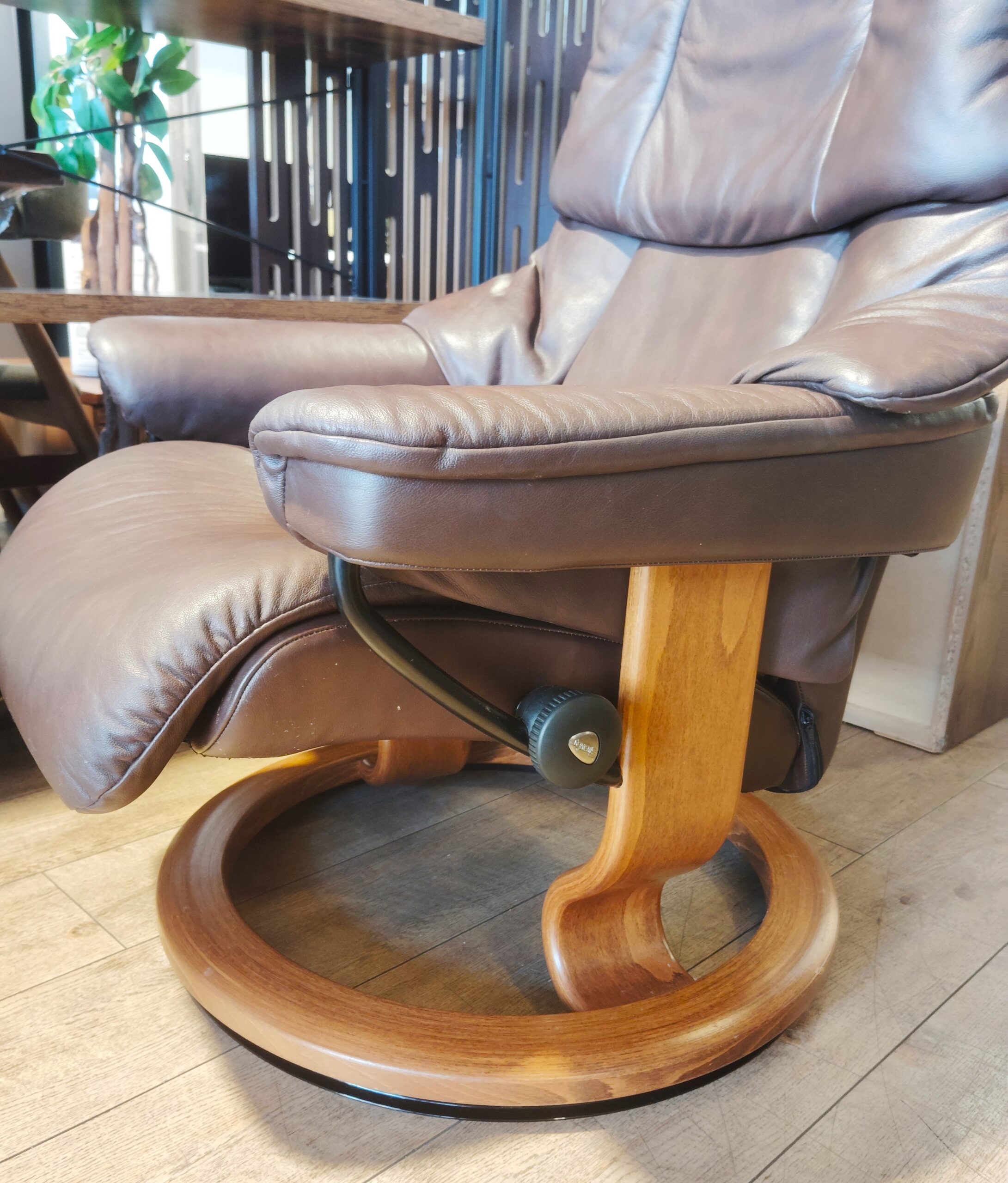 【中古品】エコーネス EKORNESレザー チーク チョコレート オットマン付き STRESSLESS Classic Reno レノ ストレスレスチェア Mサイズ 買取しました。26年2月1日