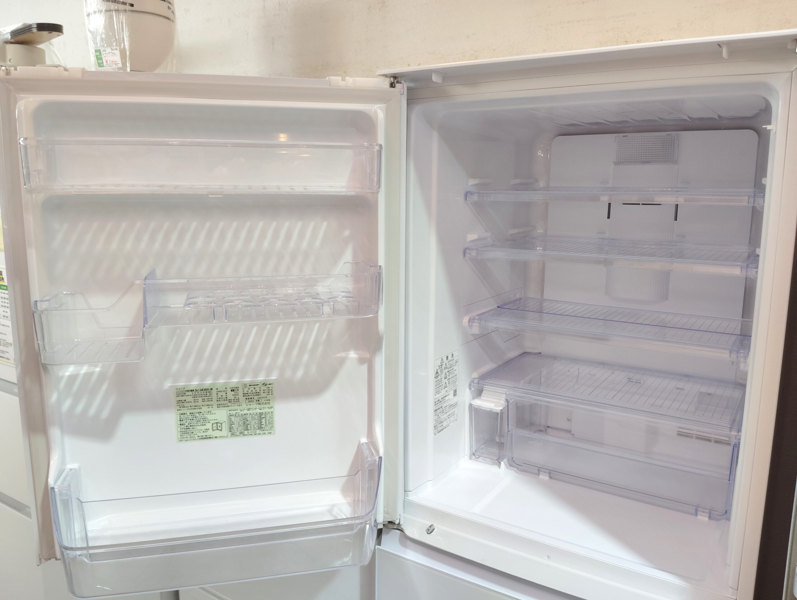 【両方開き★】SHARP 2022年製 SJ-GE35H-W ピュアホワイト プラズマクラスター どっちもドア ガラストップ 350L 3ドア 冷蔵庫 買取しました。26年3月9日