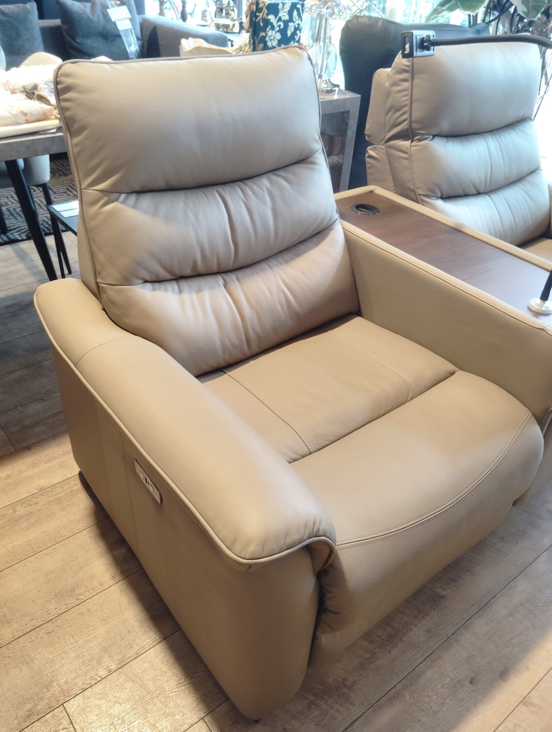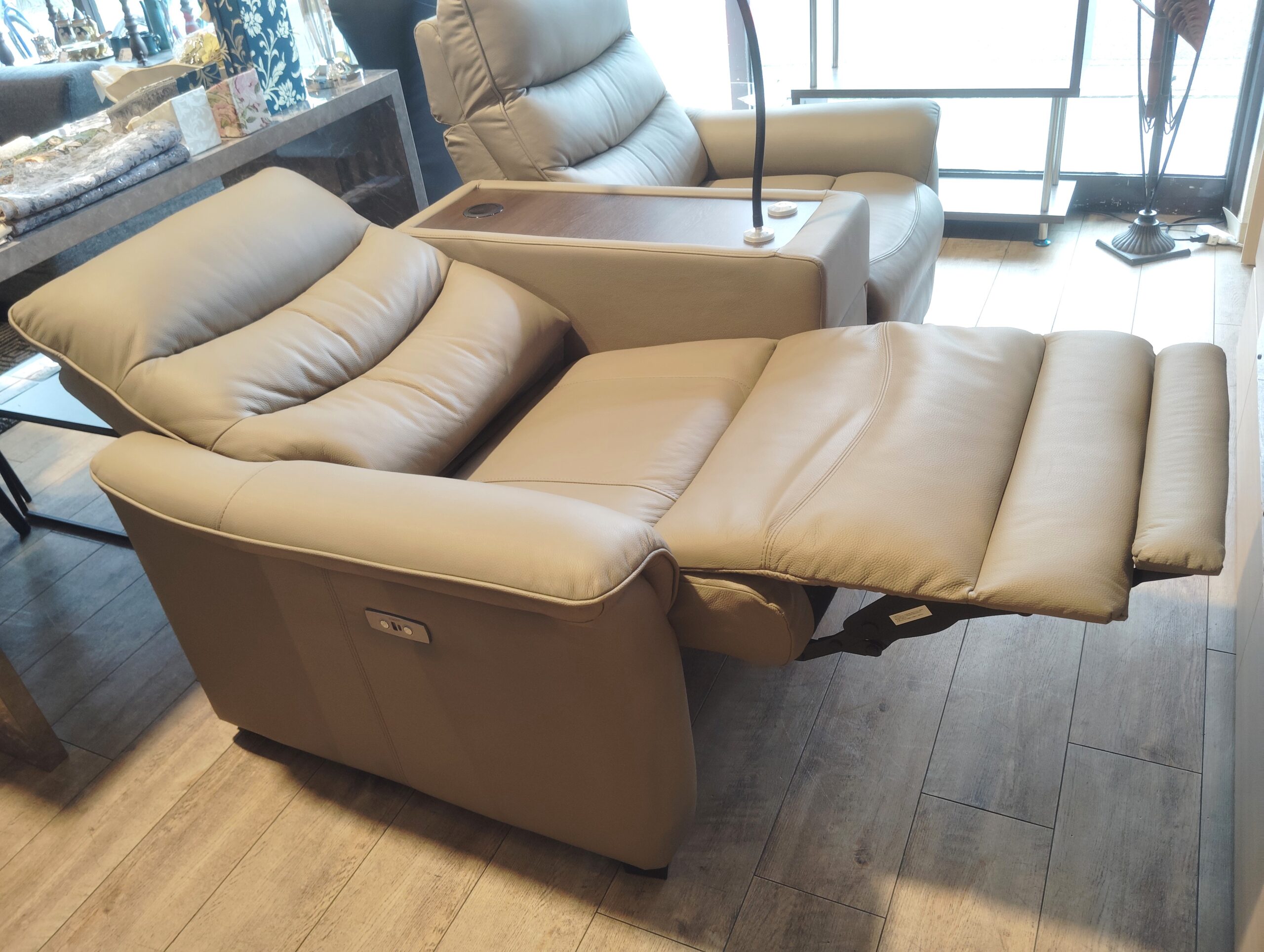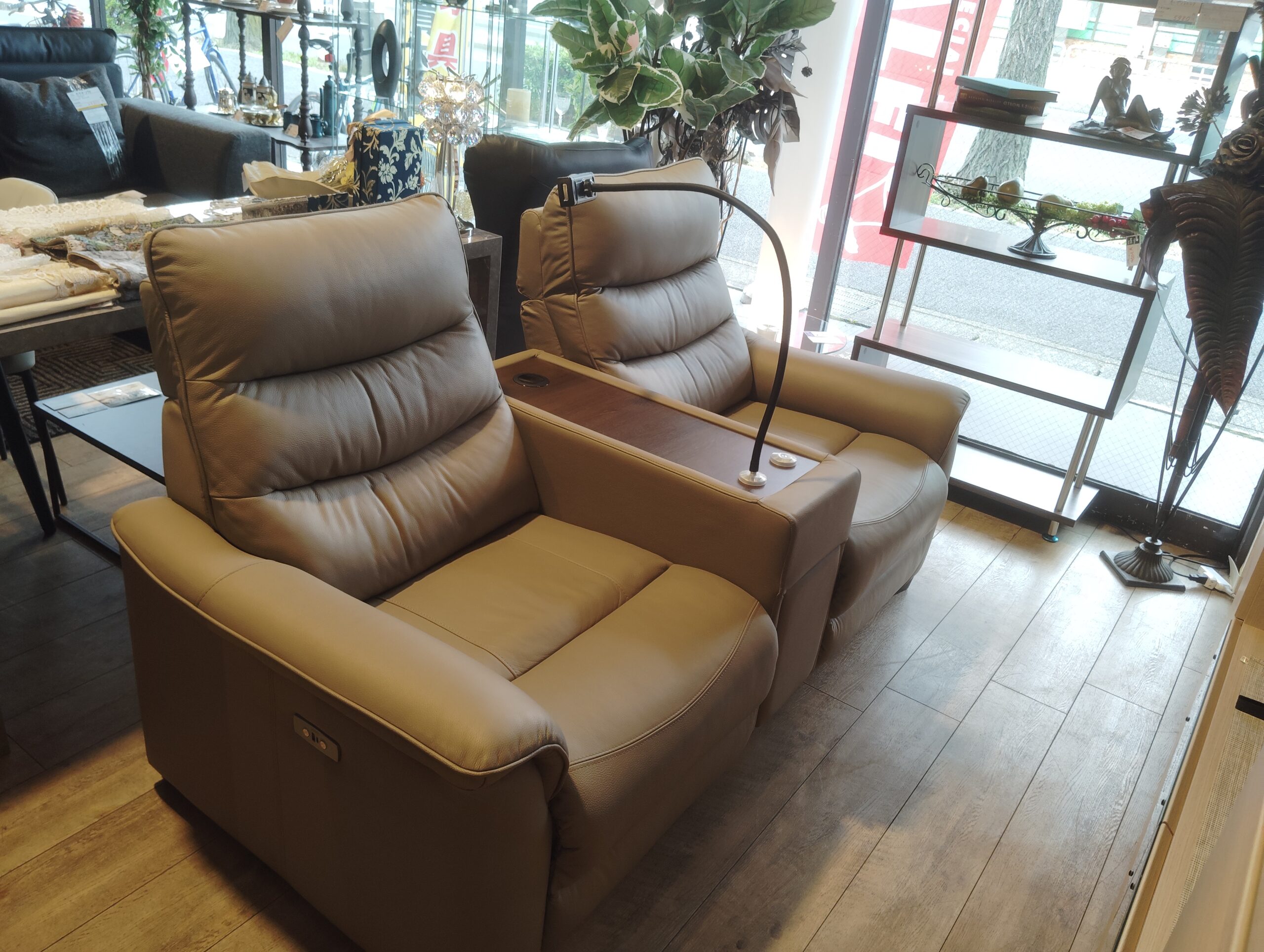 肌ざわりの良い柔らかいレザーを使用した、電動リクライニングソファです★