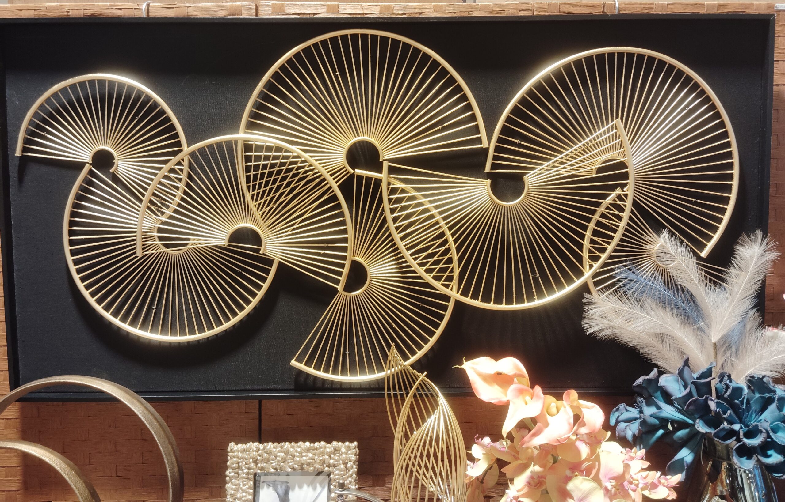 扇型のメタルファンが合わさった、現代アートです。