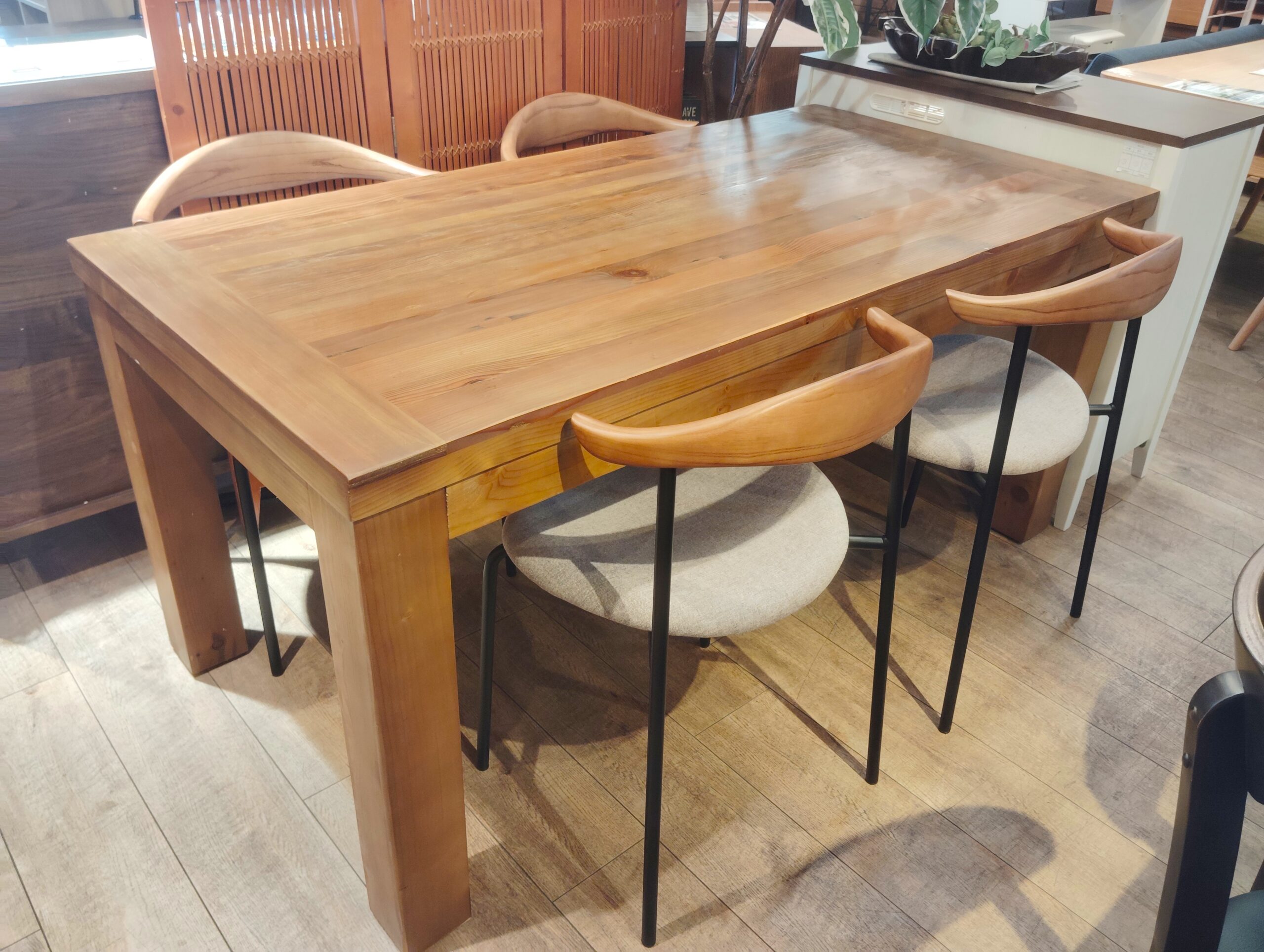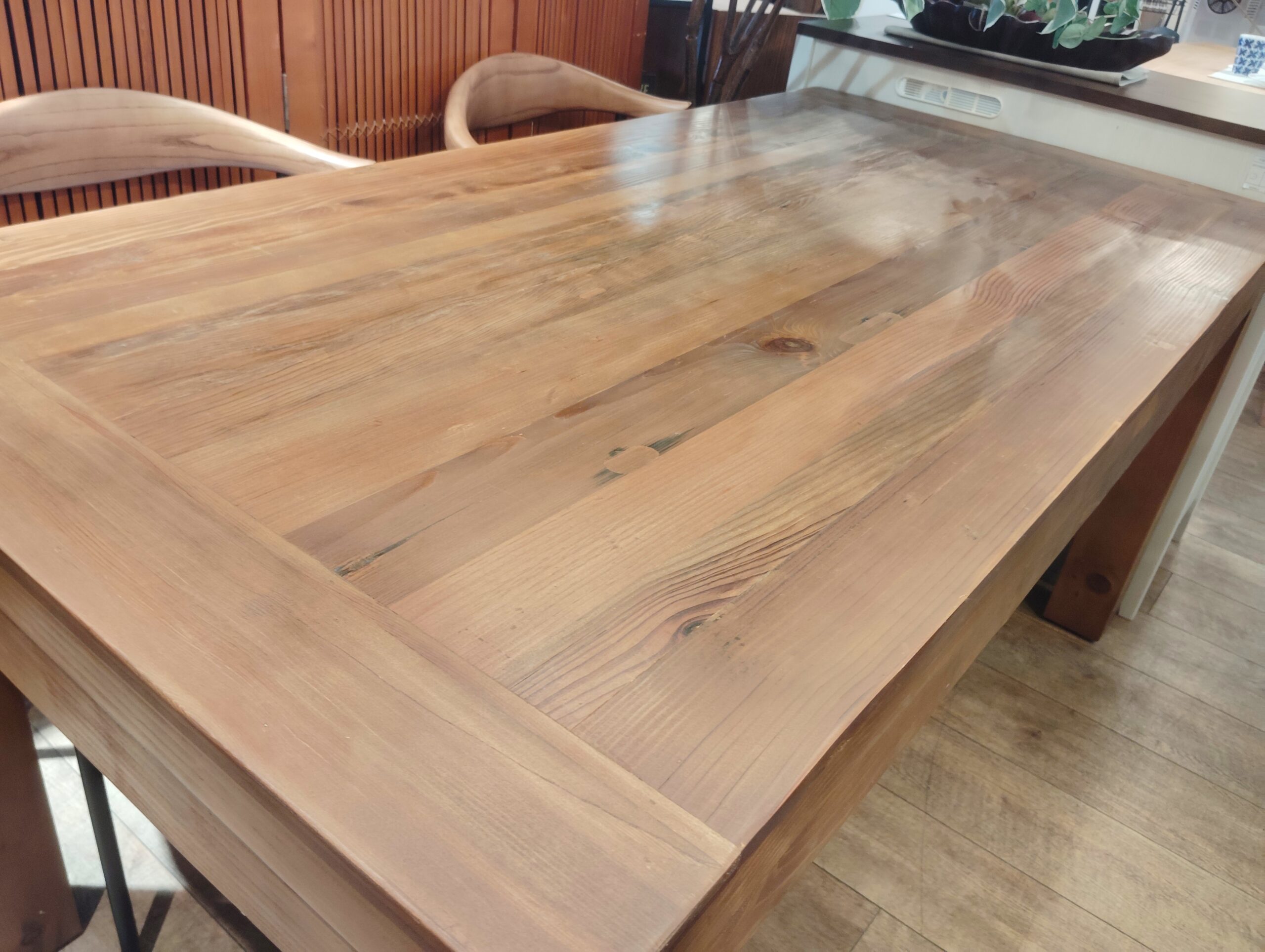 古木の雰囲気を存分に楽しめる、ダイニングテーブル。