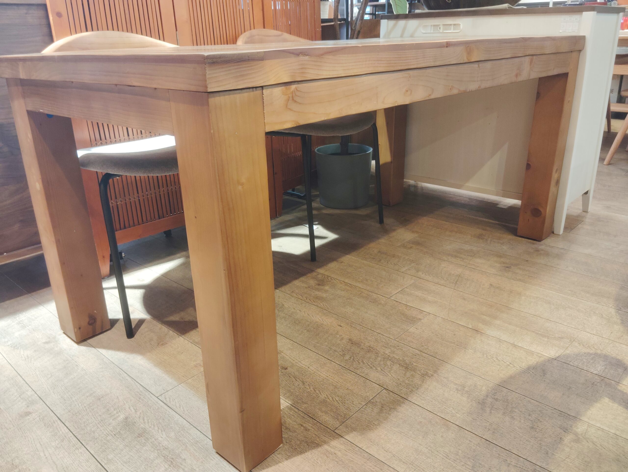 脚も天板も厚みがあるので、とてもしっかりとしたテーブルになります。