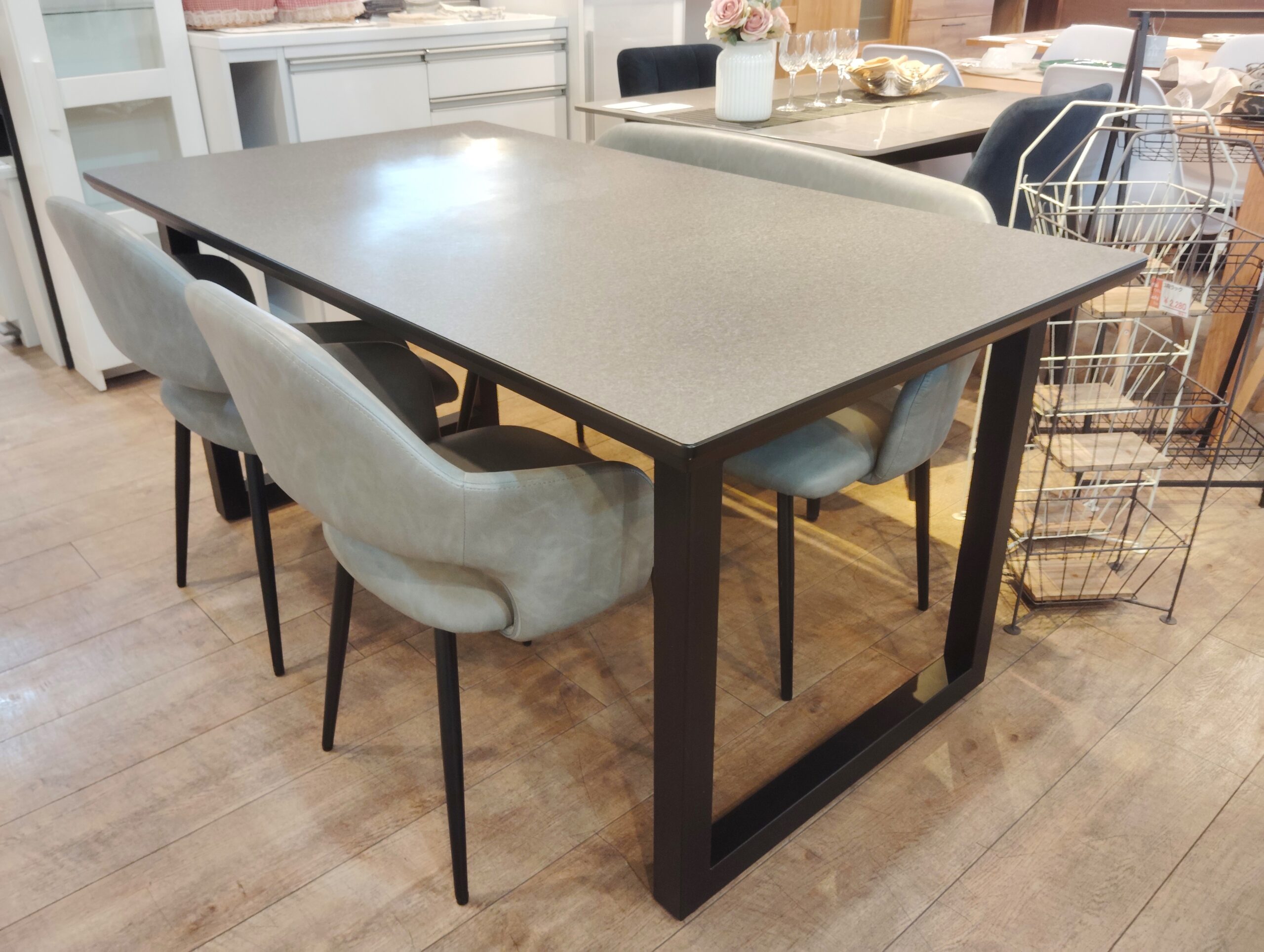 【幅150㎝★】石調 スチール脚 アームチェア アームベンチ メラミン調天板 コンクリ模様 スタイリッシュ ダイニング4点セット 買取しました。26年4月19日