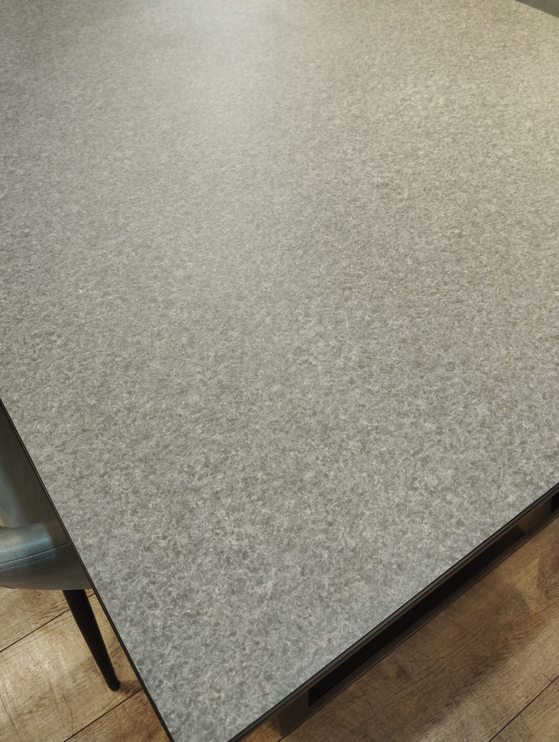 ◎石調(コンクリ模様)デザインのテーブルに、アームチェア、アームベンチがセットになった、スタイリッシュな