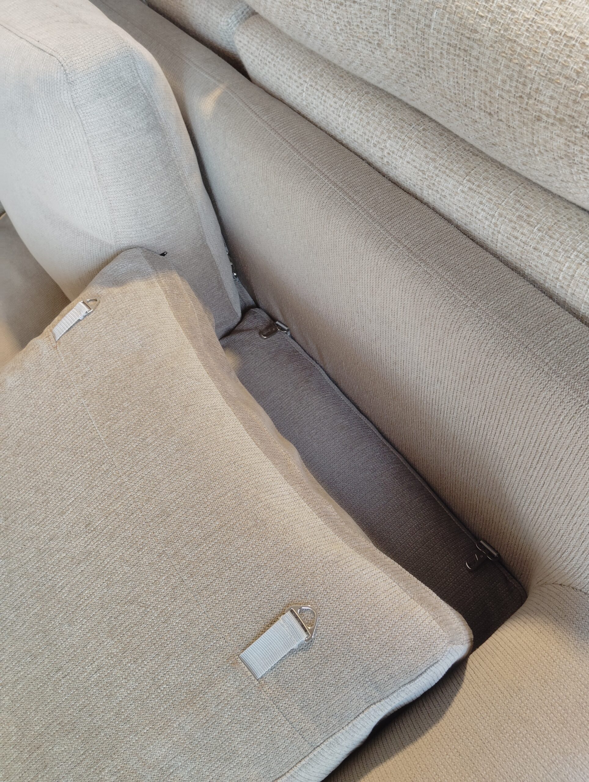 ◎背面クッションがずれないように、固定のベルトが付いています。