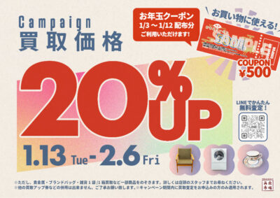 1月13日(火)~2月6日(金)まで買取20%UPキャンペーン開催中📢